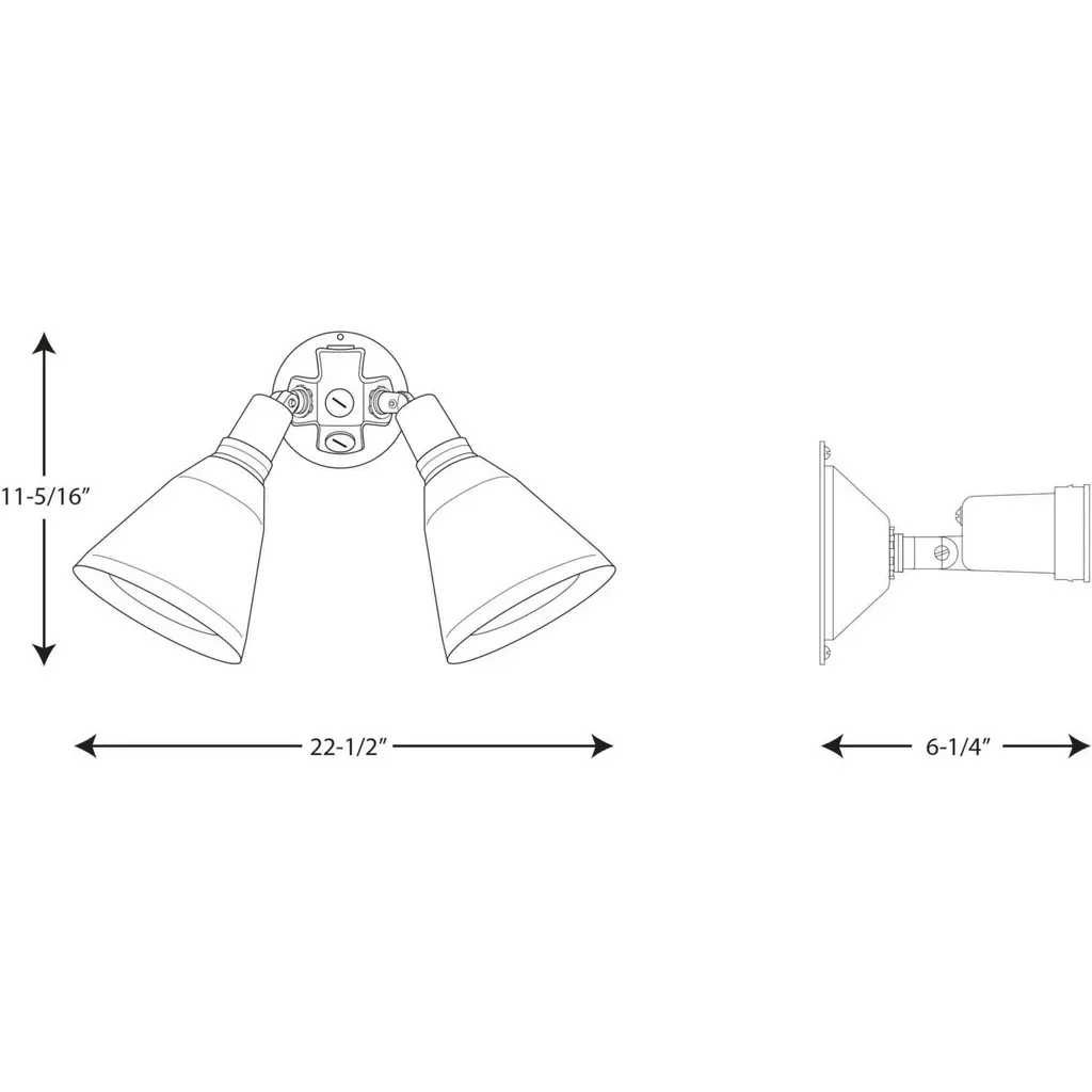 Outdoor adjustable two-headed swivel floodlight in a painted Black finish and solid Aluminum construction.