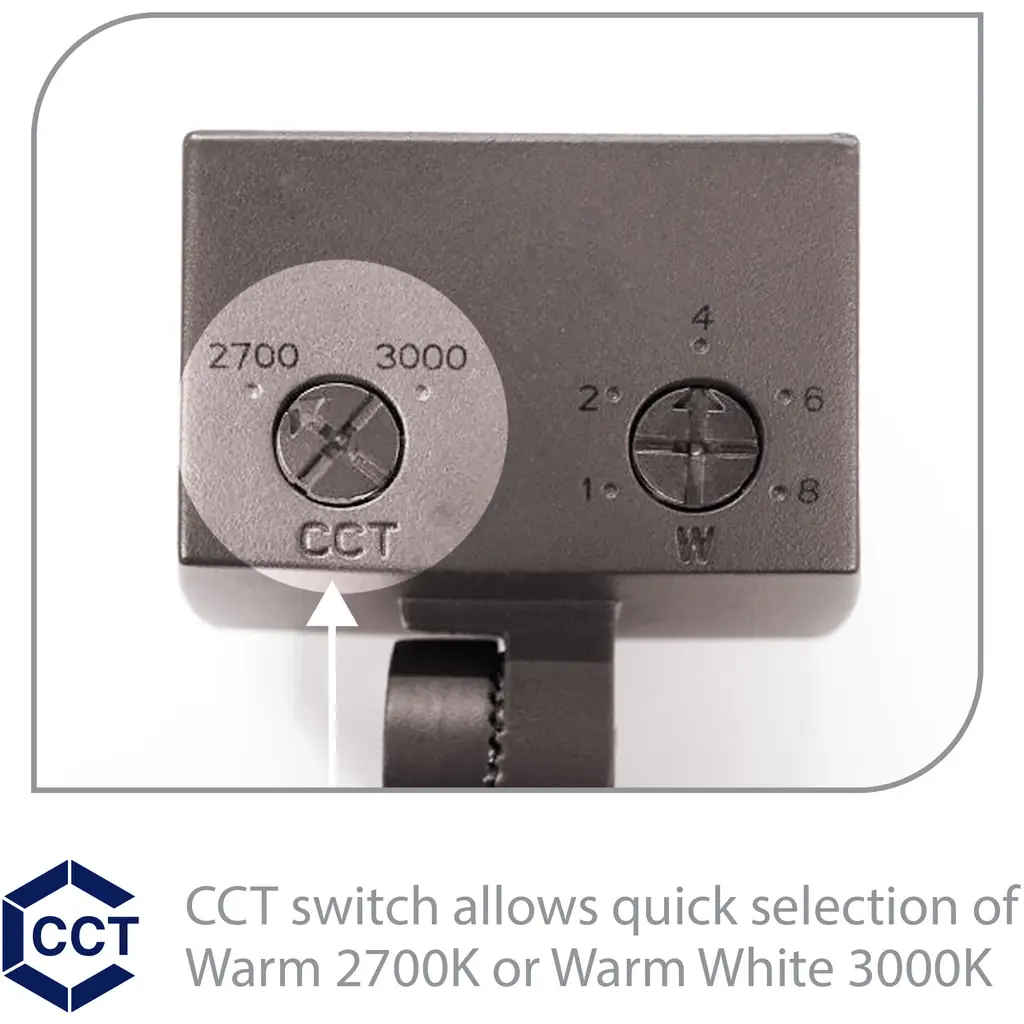 Function meets durability with this LED wall wash, available in 12V or 120V and 2700K or 3000K color temperatures. A twist of the light engine inside of the housing at indexed intervals allows fixed beam angle adjustment from flood to spot while a mechanical dial at the base of the light engine provides smooth integral brightness control. The light engine can be tilted in two 15 degree intervals and rotated to cast light in any direction. One sku fits most applications, eliminating the need to choose from dozens of light bulbs with varying light outputs when compared with traditional landscape lights. This well light has a removeable cover that is gasketed to create a water tight seal with IP66 rating for protection against high-pressure water jets and outdoor elements. Includes a 3ft lead wire with two gel filled direct burial wire nuts. Casted using a special k-alloy aluminum that is engineered to withstand the most challenging environments. Solid brass coated in bronze (-BBR finish) is available for enhanced protection against corrosive elements and is recommended for use in coastal or marine environments. A magnetic or electronic power supply is required (sold separately) for 12V fixtures. A variety of accessories are sold separately for additional mounting and glare control options.