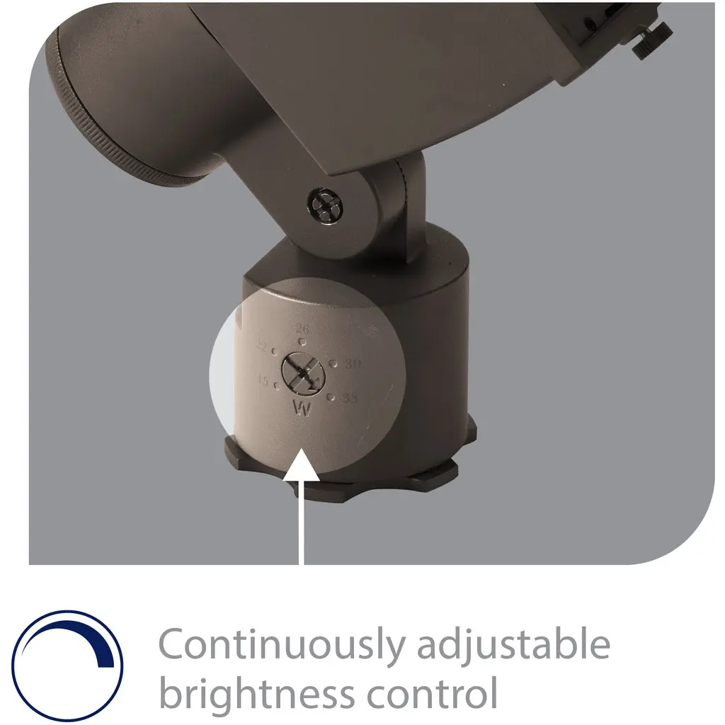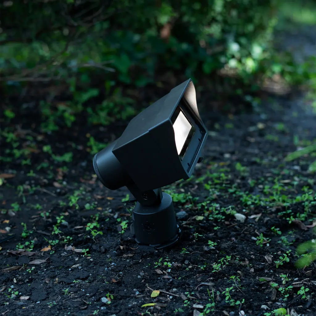 This state-of-the-art landscape lighting wall wash is packed with features and is available in 12V or 120V in 2700K or 3000K color temperature options. The adjustable wall wash light engine can also be rotated 90 degrees vertical to create a uniform wall wash that can adapt to changing needs. A simple twist of the dial located at the back of the fixture allows continuous beam angle adjustment with indexed intervals from flood to spot while a mechanical dial at the base provides smooth integral brightness control. One sku fits most applications, eliminating the need to choose from dozens of light bulbs with varying beam angles and light outputs when compared with traditional landscape lights. Factory sealed and water tight with an IP66 rating for protection against high-pressure water jets and outdoor elements. Casted using a special k-alloy aluminum that is engineered to withstand the most challenging environments over time. Solid brass coated in bronze (-BBR finish) is available for enhanced protection against corrosive elements and is recommended for use in coastal or marine environments. A detachable shroud is included along with a 9in mounting spike for 12V fixtures (120V fixtures require Sku M6000-STAKE, power stake sold separately). Includes a 3ft lead wire and two gel filled direct burial wire nuts. A powerhouse all-in-one flood light that is available in line voltage 120 VAC or low voltage 9-15VAC. A magnetic or electronic power supply is required (sold separately) for 12V fixtures. A variety of accessories are sold separately for additional mounting and glare control options.