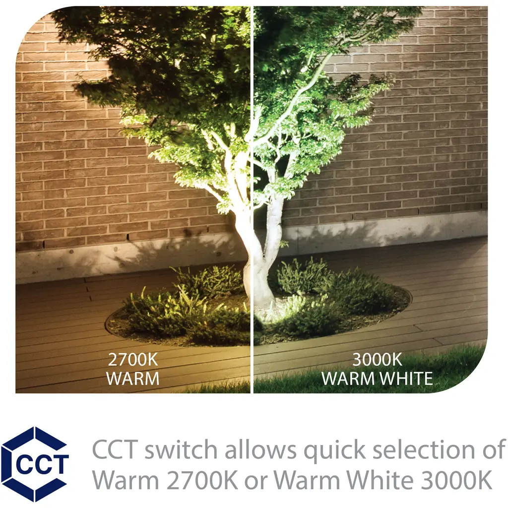 Function meets durability with this LED 3in inground well light available in 12V or 120V and 2700K or 3000K color temperatures. A mechanical dial at the base provides smooth integral brightness control and the Mini Wall Wash (SKU 5021) includes a Second mechanical dial to toggle between 2700K and 3000K color temperatures. One sku fits most applications, eliminating the need to choose from dozens of light bulbs with varying light outputs when compared with traditional landscape lights. This wall wash is factory sealed and water tight with an IP66 rating for protection against high-pressure water jets and outdoor elements. Includes a 9in mounting spike for 12V fixtures (120V fixtures require Sku M6000-STAKE, power stake sold separately), and a 3ft lead wire with two gel filled direct burial wire nuts. Casted using a special k-alloy aluminum that is engineered to withstand the most challenging environments. Solid brass coated in bronze (-BBR finish) is available for enhanced protection against corrosive elements and is recommended for use in coastal or marine environments. A magnetic or electronic power supply is required (sold separately) for 12V fixtures. A variety of accessories are sold separately for additional mounting and glare control options.