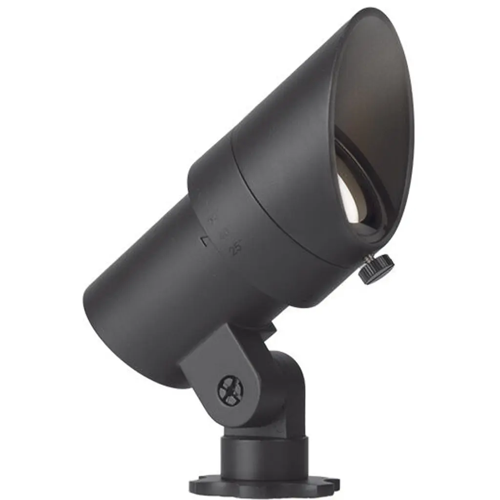 Function meets durability with the WAC Landscape Lighting LED accent light, available in 12V or 120V in a wide range of color temperature options. A simple twist of the fixture at indexed intervals (15, 30, 45, 60 degree indexes) allows continuous beam angle adjustment from flood to spot while a mechanical dial at the base provides smooth integral brightness control. One sku fits most applications, eliminating the need to choose from dozens of light bulbs with varying beam angles and light outputs when compared with traditional landscape accent lights. This accent light is factory sealed and water tight with an IP66 rating for protection against high-pressure water jets and outdoor elements. A detachable shroud is included along with a 9in mounting spike for 12V fixtures (120V fixtures require Sku M6000-STAKE, power stake sold separately). Includes a 3ft lead wire and two gel filled direct burial wire nuts. Casted using a special k-alloy aluminum that is engineered to withstand the most challenging environments over time. Solid brass coated in bronze (-BBR finish) is available for enhanced protection against corrosive elements and is recommended for use in coastal or marine environments. A magnetic or electronic power supply is required (sold separately) for 12V fixtures. A variety of accessories are sold separately for additional mounting and glare control options.