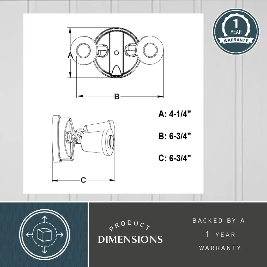 Vaxcel 2 Light Outdoor Security Flood Light With Adjustable Heads - Switch Controlled, Black