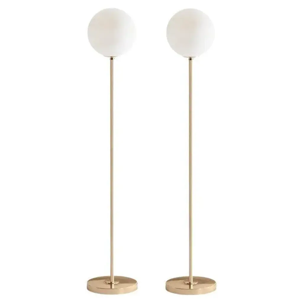 Set of 2 brass floor lamp 06 Dimmable by Magic Circus Editions Dimensions: D 25 x H 160 cm Materials: Brass base, smooth brass tube, glossy mouth blown glass Non-Dimmable version available. Up to 250V (Europe/UK Standard).