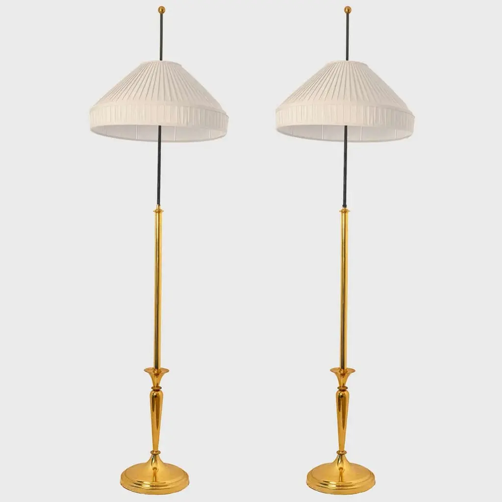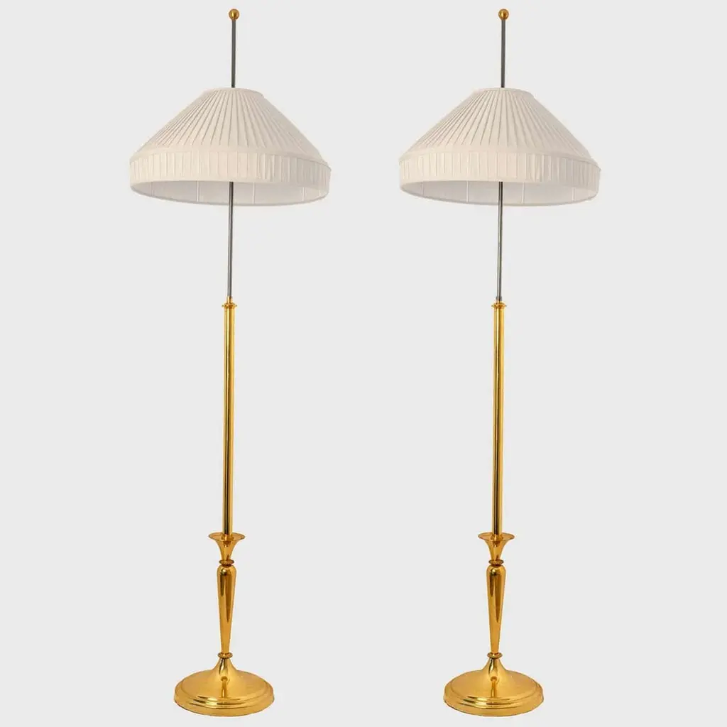 1 Of The 2 Floor Lamps With Brass And Black Base, Germany 1960