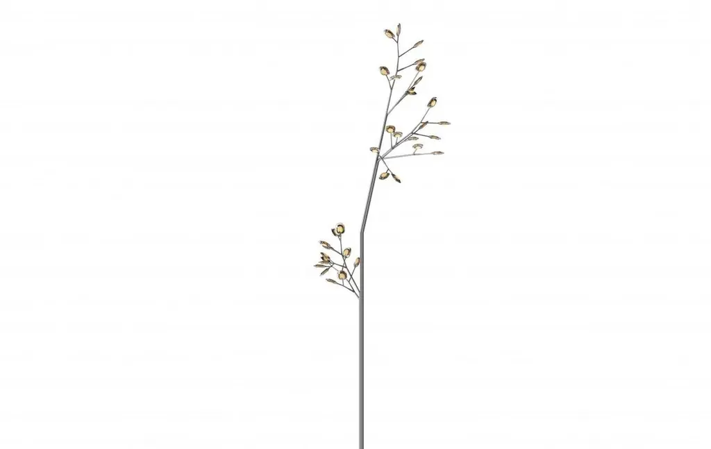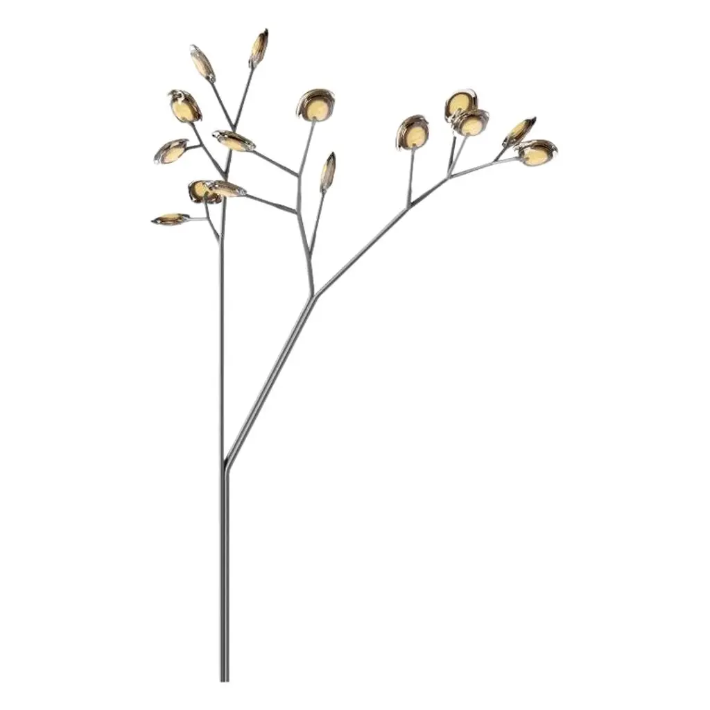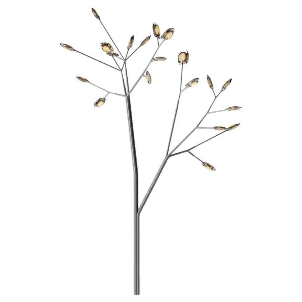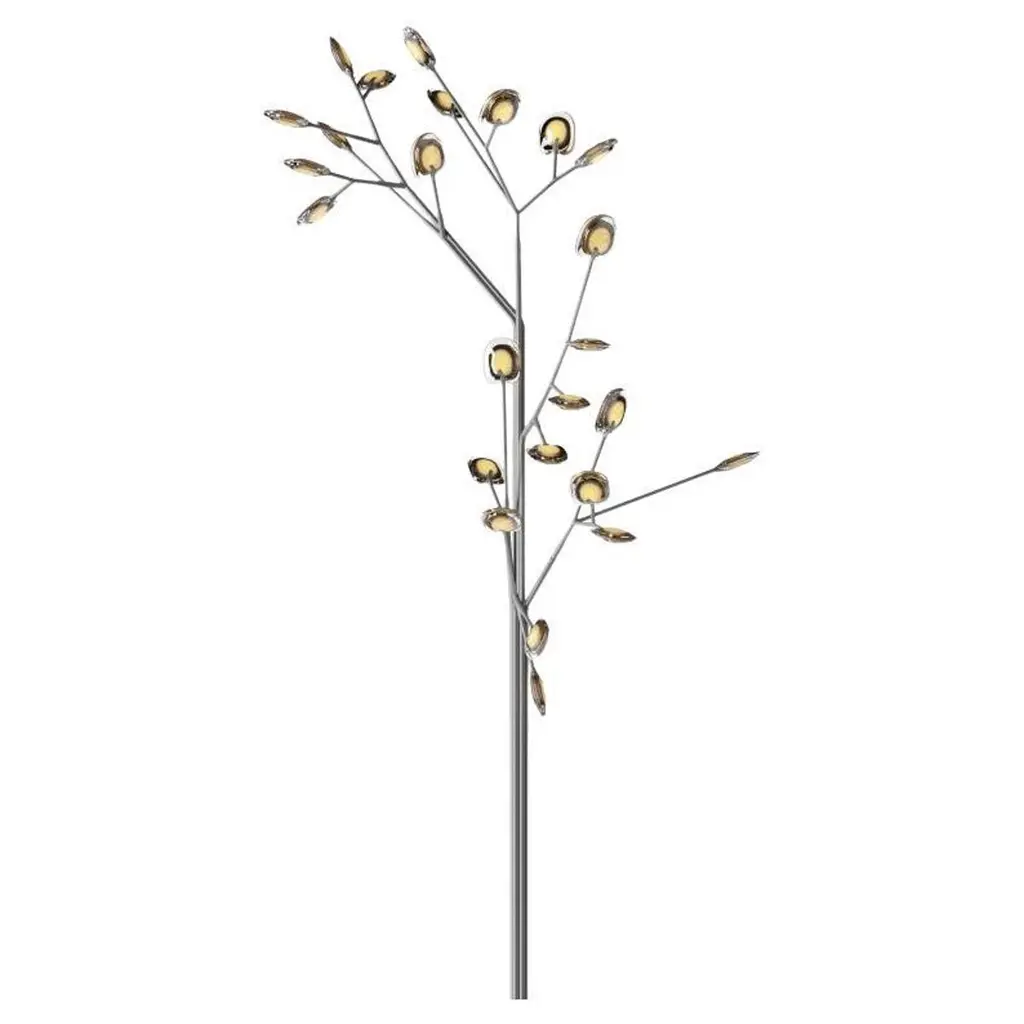 16.35 Aspen Trunk sculptural floor lamp by BocciDimensions: D 122 x W 265 x H 712 cm Materials: Poured glass, electrical components, bead-blasted stainless steel armature components. Lamping: 1.5w LED (52.5w total draw). Nondimmable. Available in different finishes, colors, and sizes. All our lamps can be wired according to each country. If sold to the USA it will be wired for the USA for instance.The 16.35 is a tree-like 16 installation using thirty-five pendants and amodular stainless steel armature system mounted to a seven-tube stainlesssteel ‘aspen’ base. These trees are designed to be grouped into forestlike assemblies of a variety of different sizes and types but are strongcompositional elements on their own. Installation of these trees is complex andBocci recommends a structural consultant to assess the viability of the systemin the context in which it is to be installed. Installation requires anchoringinto either an existing structural slab or a newly built foundation to meet thespecifications of the design drawings, including appropriate drainage if exposed to water and remotely mounted LED drivers.16 is formed by sequentially pouring three separate layers of colored, moltenglass – in varying opacities – on a horizontal plane. Each layer responds to theindeterminate shape of the previous pour to create a uniquely layered whole.Two of these pieces are then attached and illuminated with an internal LEDlamp. The fi nished 16 is visually complex: each separate color layer is visiblethrough the other layers, with light refl ecting along the edges.All trees are rated for outdoor (or indoor) use based on structural analysis formoderately sheltered locations near seawater with minimal snow loads. Anyother application restraints may need further engineering.Bocci is a design and manufacturing company based in Vancouver and Berlin. Founded in 2005 under the creative directorship of Omer Arbel, Bocci is committed to fostering a lateral and open-ended relationship between creative direction and craft. The company launched with one lighting design, ‘14’, which became an instant classic and remains a design staple and bestseller. Bocci’s growing portfolio of sculptural lighting is developed, engineered, and fabricated in-house, through an infrastructure calibrated to provide full control over technique, quality, and scale.In 2015, Bocci transformed a historic Berlin building into a showroom and archive. ‘Bocci 79’ inhabited a 2,200 m² / 23,600 sq ft former courthouse, constructed in 1896, and showcased over a decade of works by Omer Arbel, ranging from pieces in progress, prototypes, and ideas, to the complete range of catalog pieces developed for Bocci.Bocci 79 closed in June 2020 and we are currently working on our new, permanent Berlin showroom which will open soon.