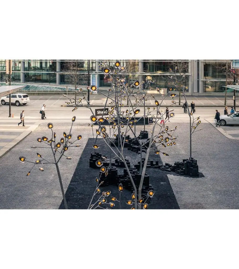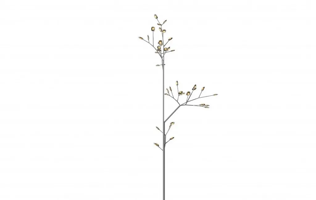 16.40 Birch trunk sculptural floor lamp by BocciDimensions: D 203.5 x W 293 x H 710 cm Materials: poured glass, electrical components, bead-blasted stainless steel armature components. Lamping: 1.5w LED (60w total draw). Nondimmable. Available in different finishes, colors, and sizes.All our lamps can be wired according to each country. If sold to the USA it will be wired for the USA for instance.The 16.40 is a tree-like 16 installation using forty pendants and a modularstainless steel armature system mounted to a seven tube stainless steel ‘birch’base. These trees are designed to be grouped into forest-like assemblies ofa variety of different sizes and types but are strong compositional elementson their own. Installation of these trees is complex and Bocci recommendsa structural consultant to assess the viability of the system in the contextin which it is to be installed. Installation requires anchoring into either anexisting structural slab or a newly built foundation to meet the specificationsof the design drawings, including appropriate drainage if exposed to water andremotely mounted LED drivers.16 is formed by sequentially pouring three separate layers of colored, moltenglass – in varying opacities – on a horizontal plane. Each layer responds to theindeterminate shape of the previous pour to create a uniquely layered whole.Two of these pieces are then attached and illuminated with an internal LEDlamp. The finished 16 is visually complex: each separate color layer is visiblethrough the other layers, with light-reflecting along the edges.All trees are rated for outdoor (or indoor) use based on structural analysis formoderately sheltered locations near seawater with minimal snow loads. Anyother application restraints may need further engineeringBocci is a design and manufacturing company based in Vancouver and Berlin. Founded in 2005 under the creative directorship of Omer Arbel, Bocci is committed to fostering a lateral and open-ended relationship between creative direction and craft. The company launched with one lighting design, ‘14’, which became an instant classic and remains a design staple and bestseller. Bocci’s growing portfolio of sculptural lighting is developed, engineered, and fabricated in-house, through an infrastructure calibrated to provide full control over technique, quality, and scale.In 2015, Bocci transformed a historic Berlin building into a showroom and archive. ‘Bocci 79’ inhabited a 2,200 m² / 23,600 sq ft former courthouse, constructed in 1896, and showcased over a decade of works by Omer Arbel, ranging from pieces in progress, prototypes, and ideas, to the complete range of catalog pieces developed for Bocci.Bocci 79 closed in June 2020 and we are currently working on our new, permanent Berlin showroom which will open soon.