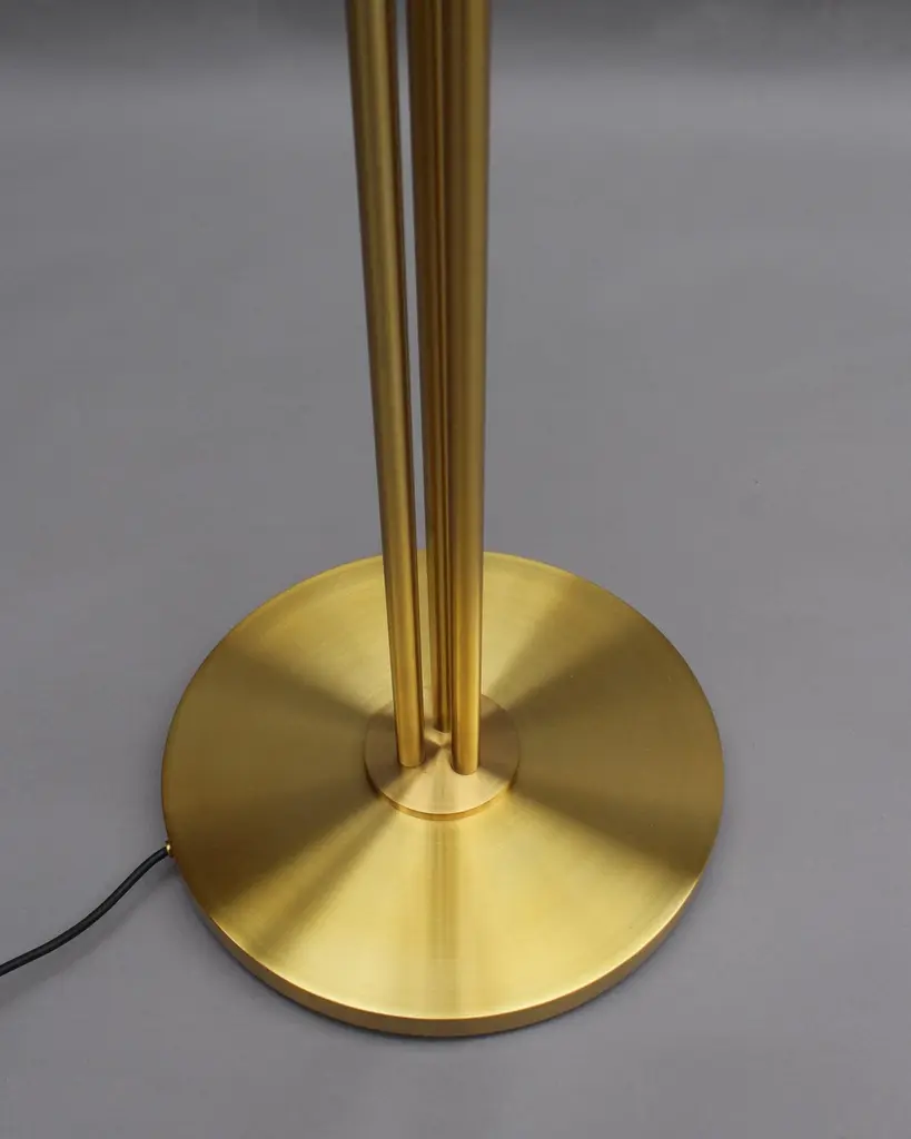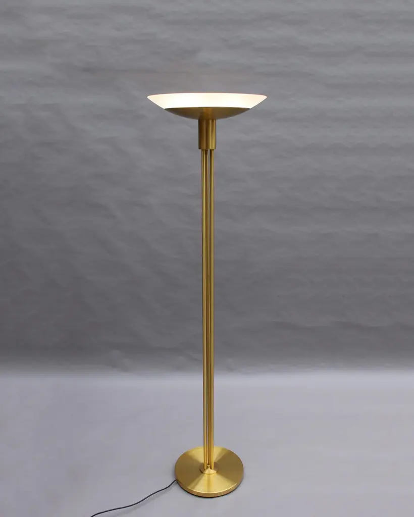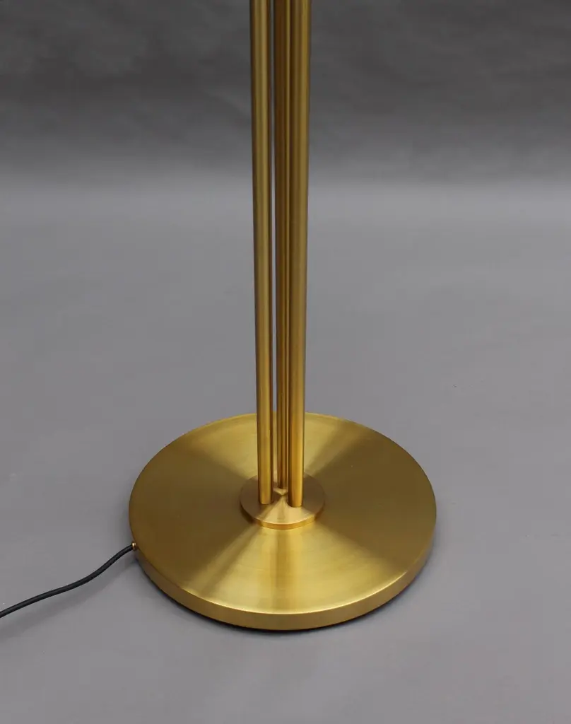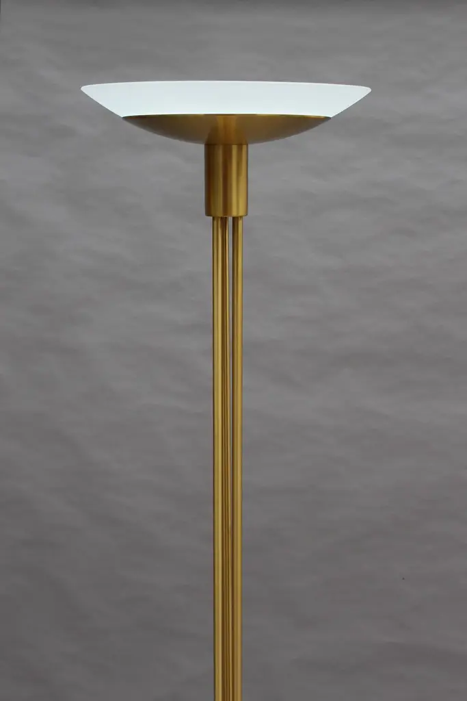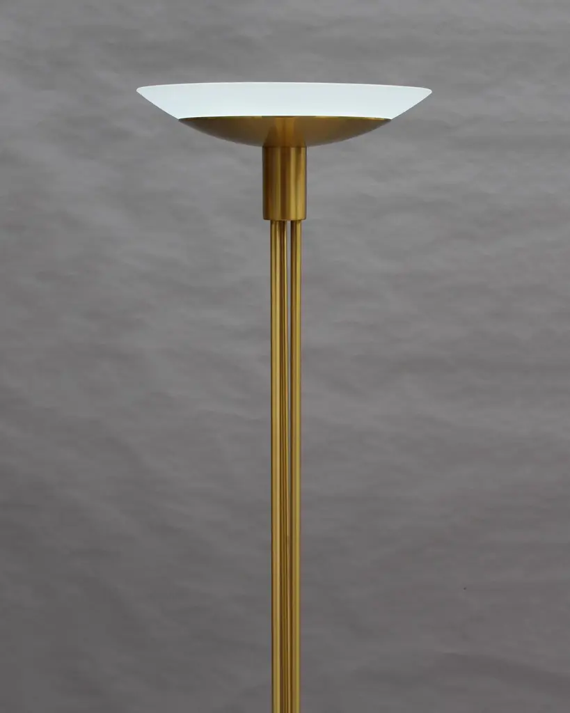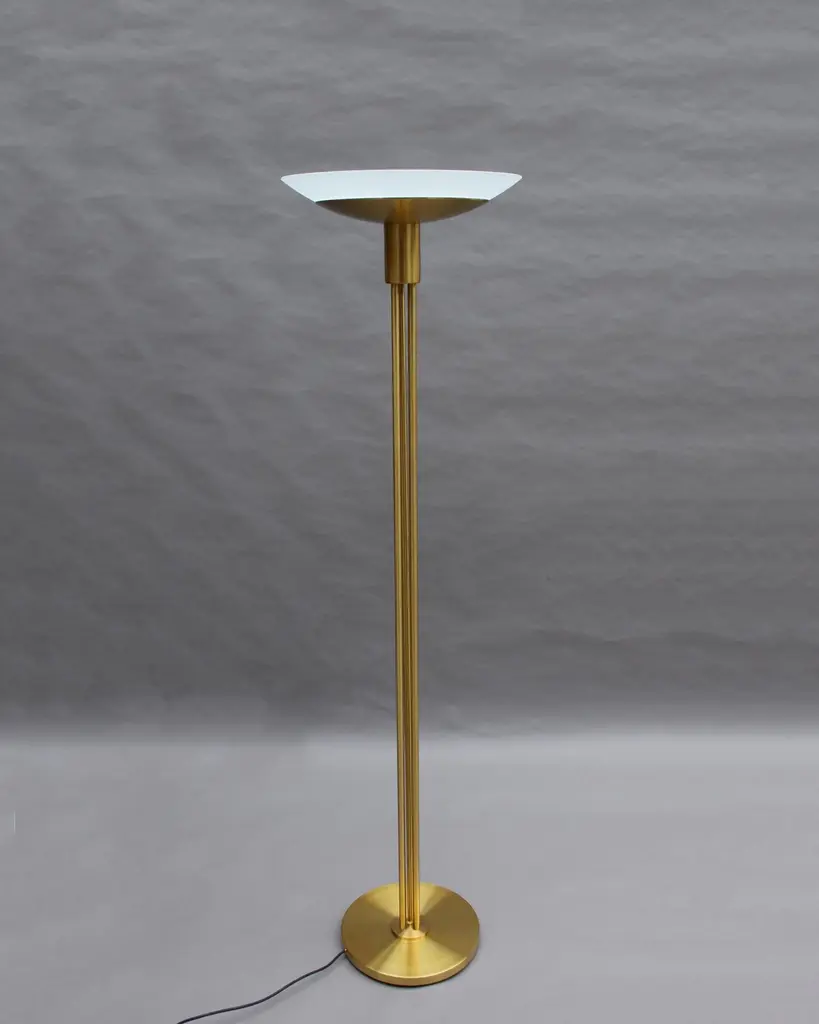 Jean Perzel - Two fine French 1950s bronze base floor lamps with 3 stems that support a bronze bowl and an optical glass diffuser.Price is per lamp.