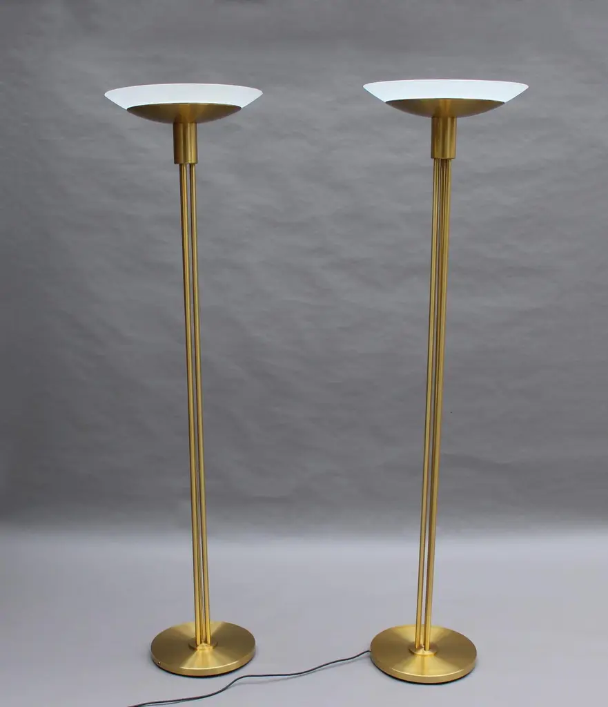2 Fine French Mid-Century Bronze And Glass Floor Lamps By Perzel