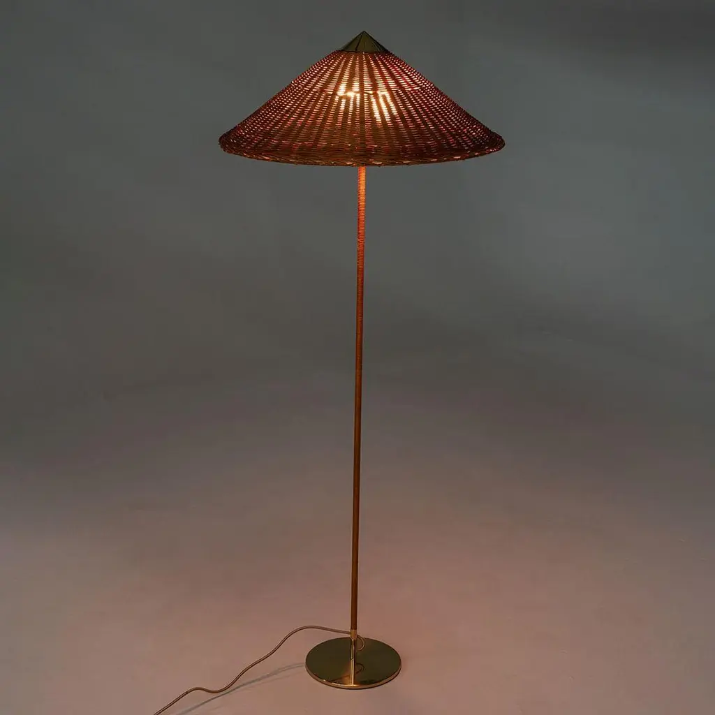 2024 Paavo Tynell For Gubi 9602 Floor Lamp "Chinese Hat" W/ Wicker Willow Shade