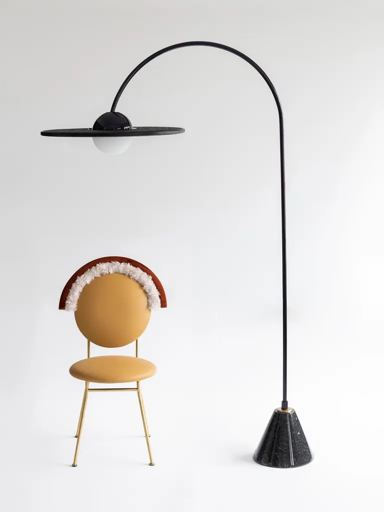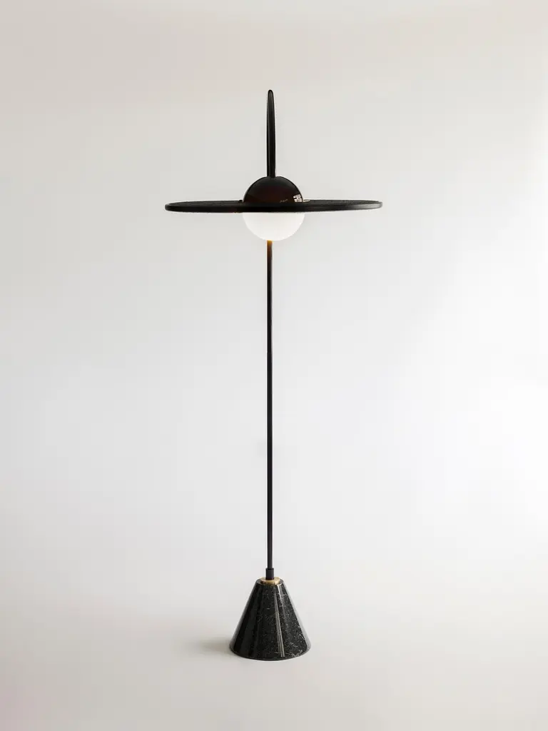 Cassini lamps are named after the famous “Cassini–Huygens” Mission which was a collaboration between NASA, the European Space Agency (ESA) and the Italian Space Agency (ASI) to send a probe to study the planet Saturn and its system. Cassini-Huygens has been described as a "Mission of firsts", that has revolutionized human understanding of the Saturn system, including its moons and rings, and our understanding of where life might be found in the Solar System.Being inspired by this incredible Mission and planet Saturn, the designer created these exceptional lighting series.Cassini floor lamps come with beautiful carved marbles at the bottom to support and hold their structure. Rosa Pink marble is used for the blue version with black finish rattan orbit.