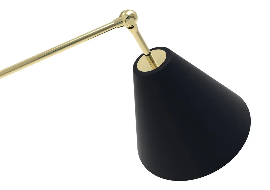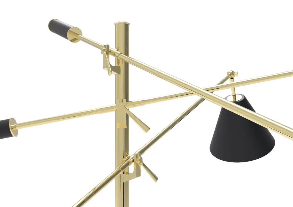 Icon of Arredoluce, symbol of an era and source of inspiration for many objects to follow over time, Triennale is perhaps the best known project by Angelo Lellii. Presented at the VII Milan Triennale in 1947, it is a floor lamp with a brass linear structure and three adjustable arms, each ending with a diffuser colored in black. New edition 2019. On-off lighting control. Bulbs included (7W - 230V - E27 LED dimmable - 2700K - 806 lm).