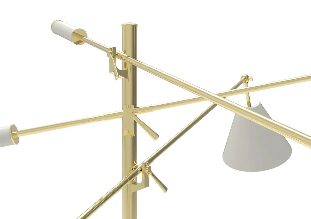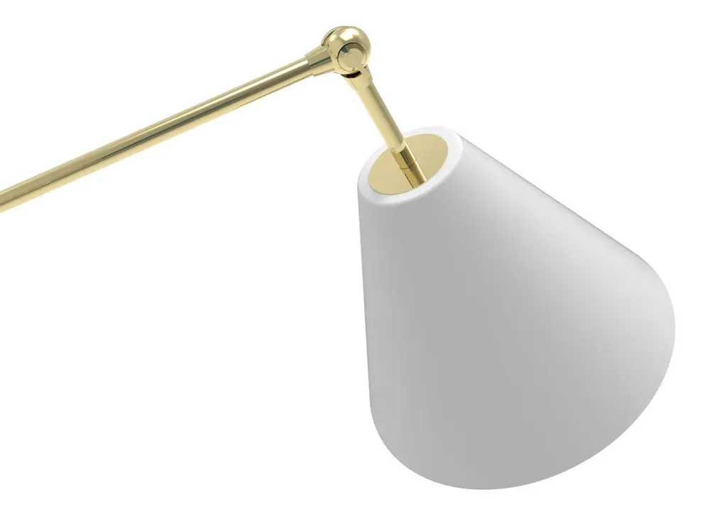 Icon of Arredoluce, symbol of an era and source of inspiration for many objects to follow over time, Triennale is perhaps the best known project by Angelo Lellii. Presented at the VII Milan Triennale in 1947, it is a floor lamp with a brass linear structure and three adjustable arms, each ending with a diffuser colored in white. New edition 2019. On-off lighting control. Bulbs included (7W - 230V - E27 LED dimmable - 2700K - 806 lm).