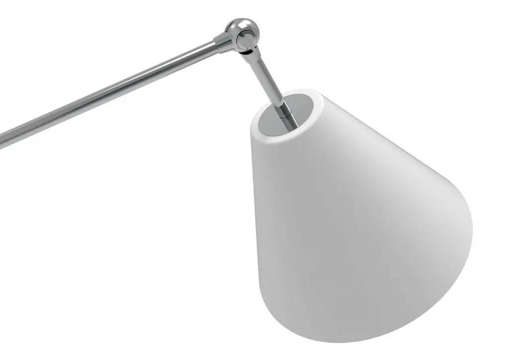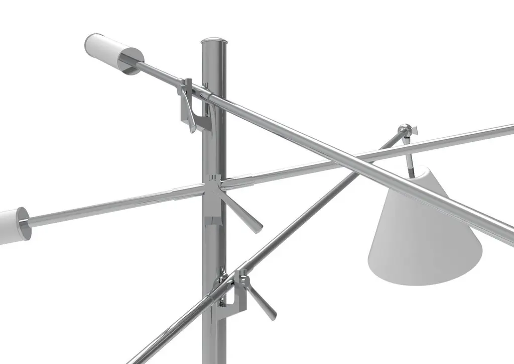 Icon of Arredoluce, symbol of an era and source of inspiration for many objects to follow over time, Triennale is perhaps the best known project by Angelo Lellii. Presented at the VII Milan Triennale in 1947, it is a floor lamp with a chromed linear structure and three adjustable arms, each ending with a diffuser colored in white. New edition 2019. On-off lighting control. Bulbs included (7W - 230V - E27 LED dimmable - 2700K - 806 lm).