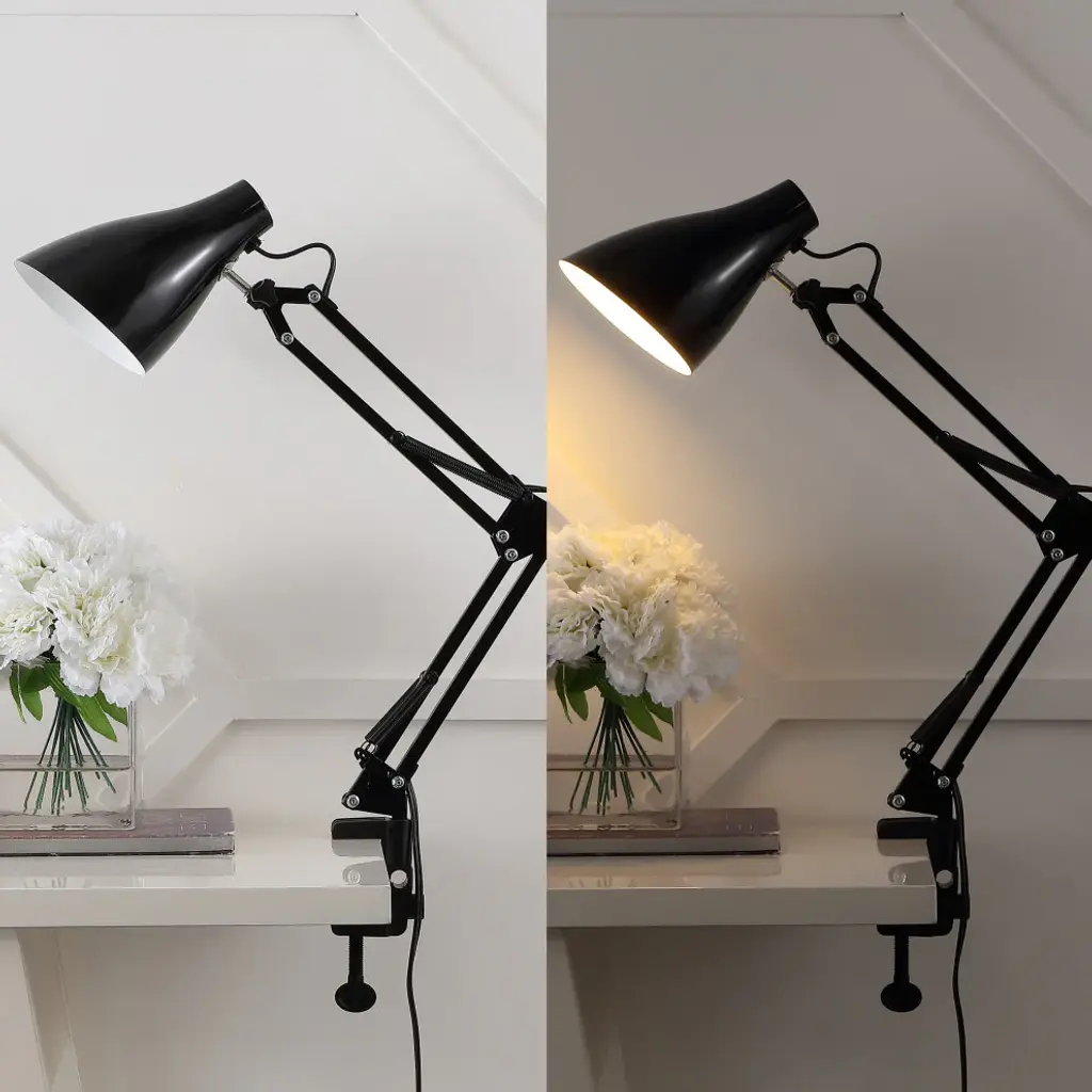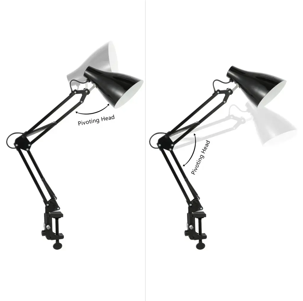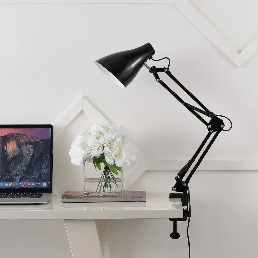 Upgrade your office or studio with a mid-century design classic. This task lamp adjusts easily to multiple positions, and the shade tilts to spotlight your work with a bright LED bulb. The sturdy clamp anchors solidly to any desk or work table.Features:• The classic black finish fits in anywhere, and a white interior on the shade provides maximum lighting• Quality touches include a rotating metal shade, adjustable table clamp and in-line switch• This lamp''s vintage style and articulated design make it ideal for a workspace, home office or art studio• Eco-friendly 4W LED bulb included• Takes 1 bulb and compatible with TYPE "A" 40W or CFL 13W or LED 9W• Color: Black• Body Material: Metal• Includes: One (1) lamp• Assembly RequiredDimensions:• Lamp: 28.5 inches high x 5 inches wide x 10 inches deepAbout us:You see a lamp.We see a decorative work of art.A perfectly curved shade casts a dramatic shadow on a floor. Compatible with LED lightbulbs: as easy on the environment as they are on the eyes. The JONATHAN Y Lighting collection considers every detail from impeccably sourced materials to designer styling. And our prices are so attractive, we''ve transformed a functional necessity into a fashion accessory.JONATHAN Y Lighting - a fashion revolution in home decor.