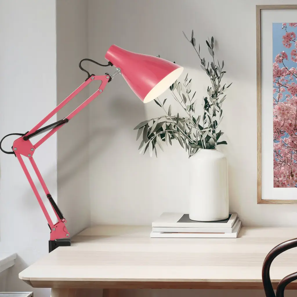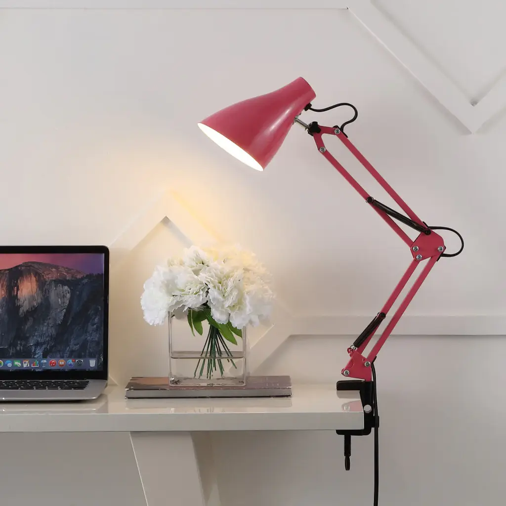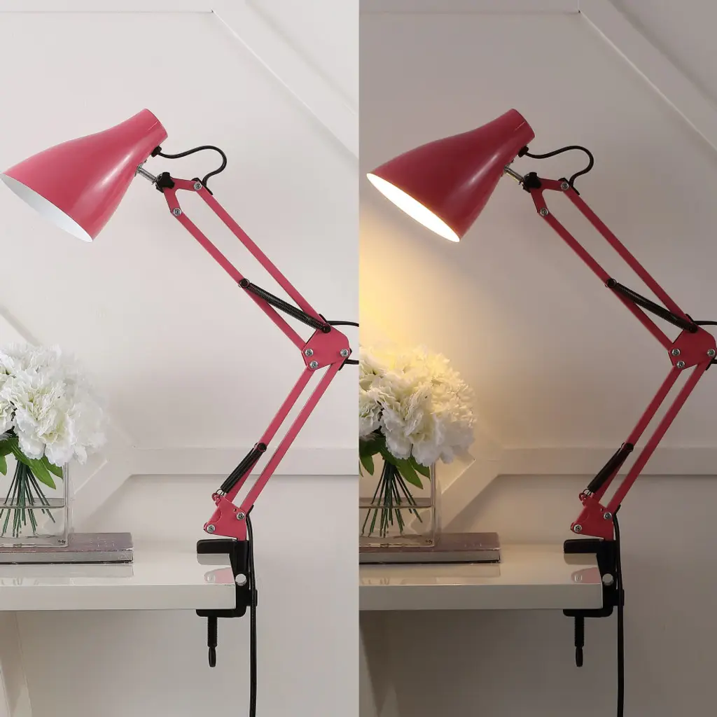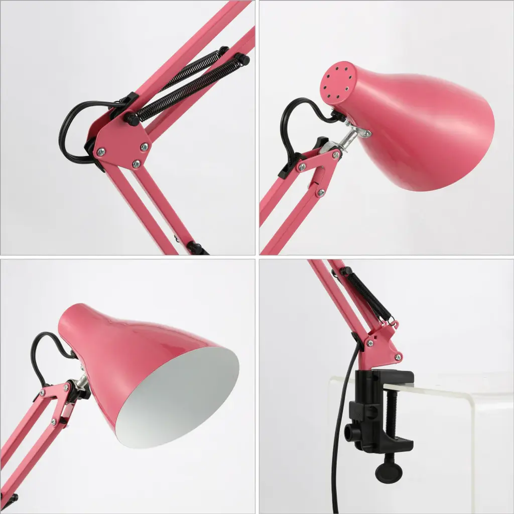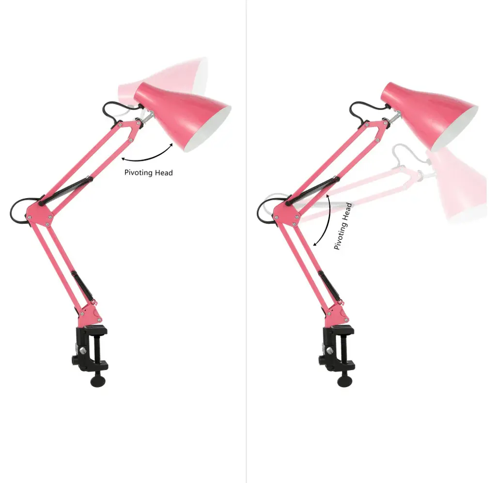 Upgrade your office or studio with a mid-century design classic. This task lamp adjusts easily to multiple positions, and the shade tilts to spotlight your work with a bright LED bulb. The sturdy clamp anchors solidly to any desk or work table.Features:• The classic pink finish fits in any stylish area, and a white interior on the shade provides maximum lighting• Quality touches include a rotating metal shade, adjustable table clamp and in-line switch• This lamp''s vintage style and articulated design make it ideal for a workspace, home office or art studio• Eco-friendly 4W LED bulb included• Takes 1 bulb and compatible with TYPE "A" 40W or CFL 13W or LED 9W• Color: Pink• Body Material: Metal• Includes: One (1) lamp• Assembly RequiredDimensions:• Lamp: 28.5 inches high x 5 inches wide x 10 inches deepAbout us:You see a lamp.We see a decorative work of art.A perfectly curved shade casts a dramatic shadow on a floor. Compatible with LED lightbulbs: as easy on the environment as they are on the eyes. The JONATHAN Y Lighting collection considers every detail from impeccably sourced materials to designer styling. And our prices are so attractive, we''ve transformed a functional necessity into a fashion accessory.JONATHAN Y Lighting - a fashion revolution in home decor.