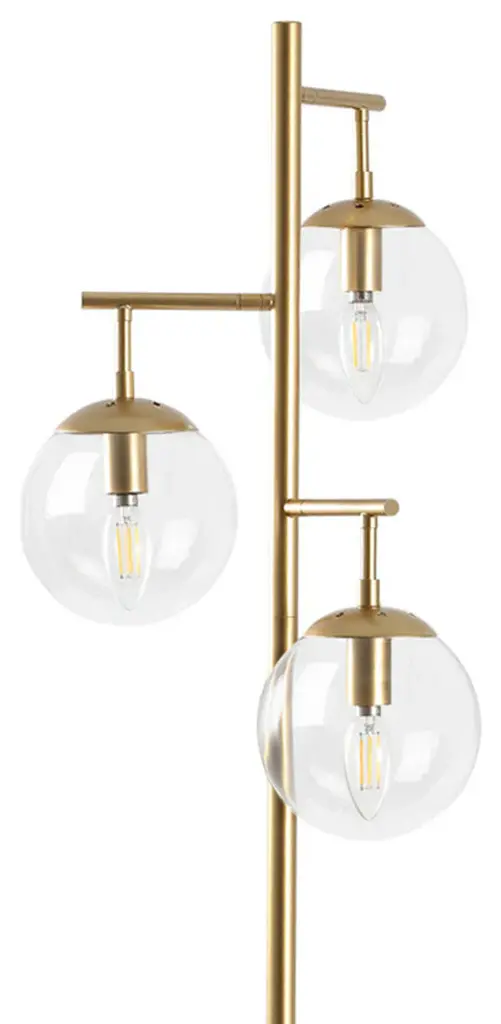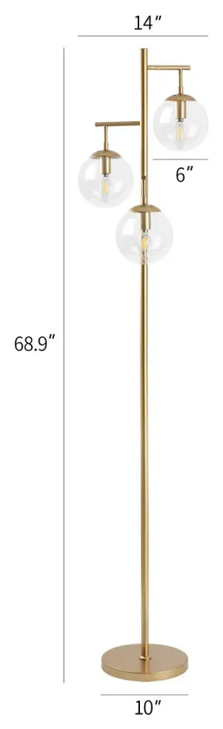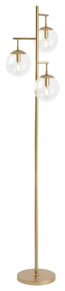 This 3-light globe floor lamp will definitely add artistic style to your space. Its warm light and elegant design make it a perfect match for a variety of decors such as modern, contemporary, minimalist, urban, art deco. Under the soft and bright light given off by this tree floor lamp, you can fully enjoy the comfortable ambience.Features:Uses three E12 base bulbs, max 40W per bulb(not included);Easy to turn on and off the light with the step-on switch;Perfect for living room, bedroom, bedside, office, study, etc.
