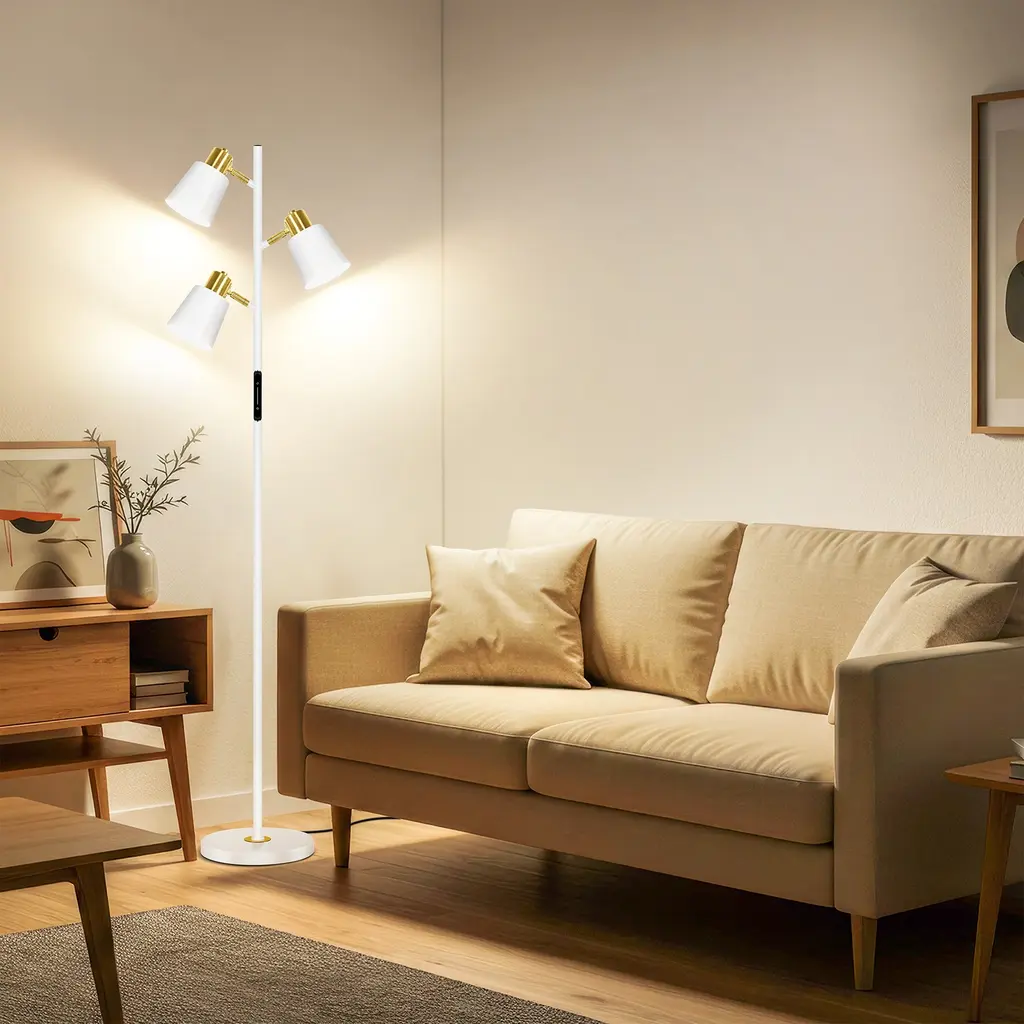 3-Light Metal Floor Lamp - Gold - Gold
