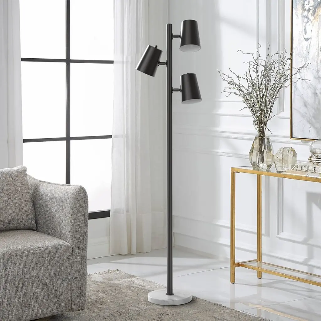 A floor lamp is the perfect blend of style and function, offering versatile lighting solutions for any room in your home. Whether you're looking to add ambient lighting to your living room, reading light beside your favorite chair, or an accent piece for your bedroom, a floor lamp provides both practical illumination and a touch of elegance.DESCRIPTION The Urban Habitat Alta 3-Light Metal Floor Lamp provides a unique and stylish addition to your space. This metal pendant features a gold finish creating a striking look. This floor lamp adds an eye-catching look to your decor. Three Type A lightbulbs is needed(not included). PRODUCT DETAILS See below 1 Floor lamp: 12.25"Dia x 65.5"H Body Size: 5.5"Dia x 65.5"H Shade Size: 3.875"Dia x 6.125"H Base Size: 5.5"Dia x 10"H Socket Size: 1.5"Dia x 2.5"H Cord Length: 96" MATERIAL 100% Iron Shade: Metal Base: Metal Metal Finish: GoldRound shade shape with a bronze standMetal base in a bronze sand finishShade has the ability to tilt96" clear cord length and color