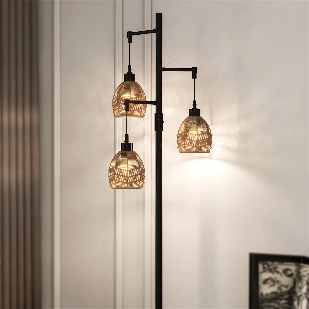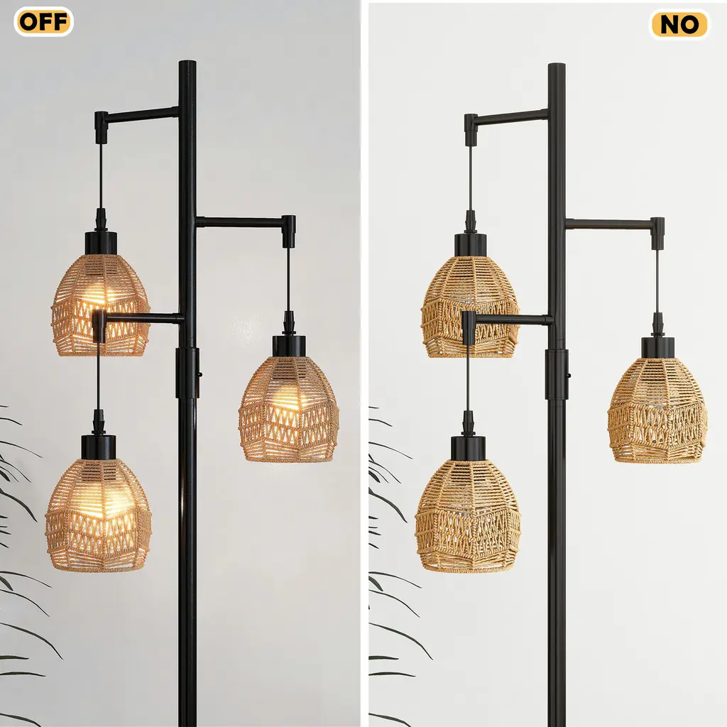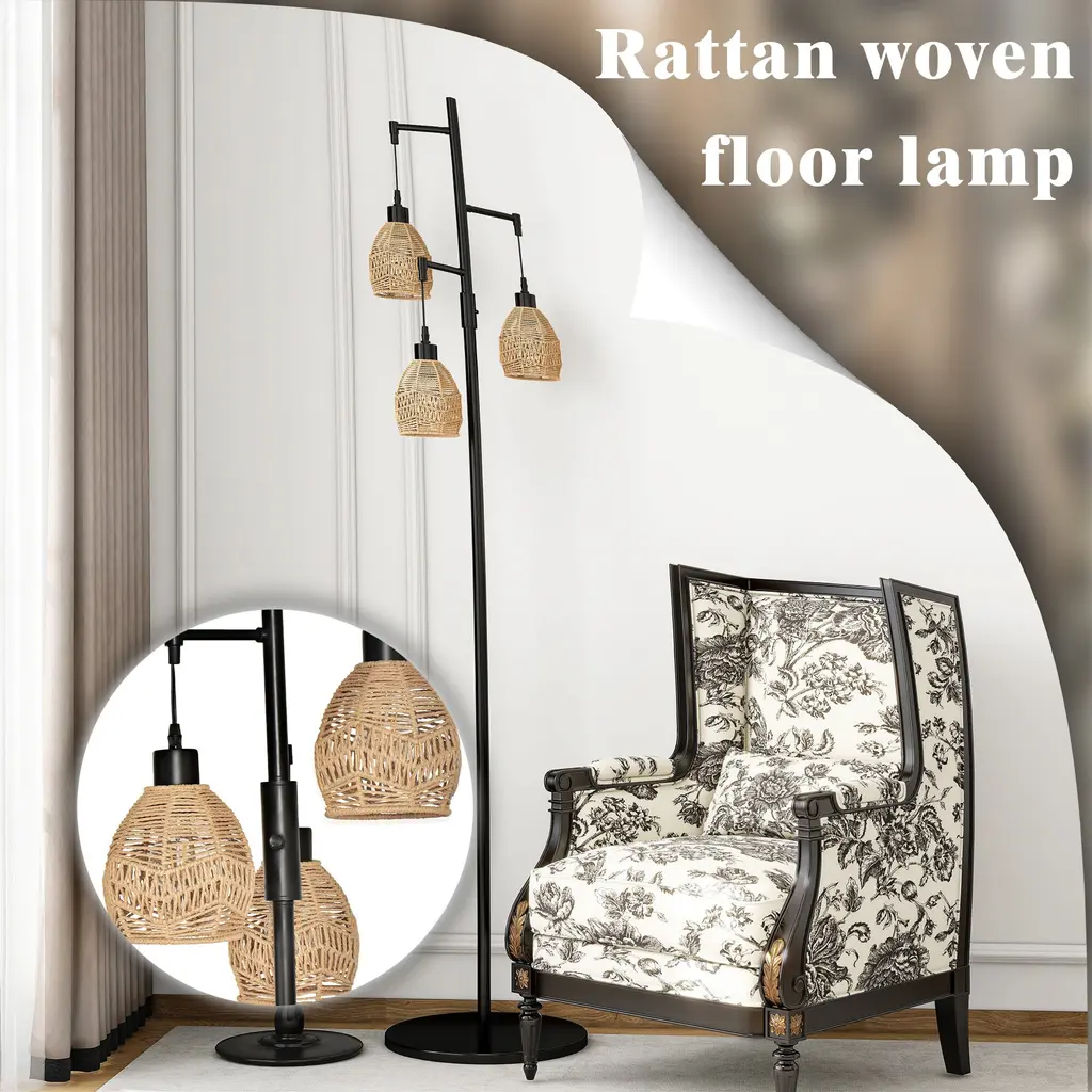Wanna add some costal sea vibe to your favorite room? Why not try this perfect floor lamp to fulfill your thought? This great floor lamp comes with three lights and cute lampshades. The lampshades are hand-woven from natural rattan and create an ambient atmosphere when you turn them on. More conveniently, it comes with a foot switch attached to its power cord, so you can easily turn it on/off anytime.Feature:Highlight:
