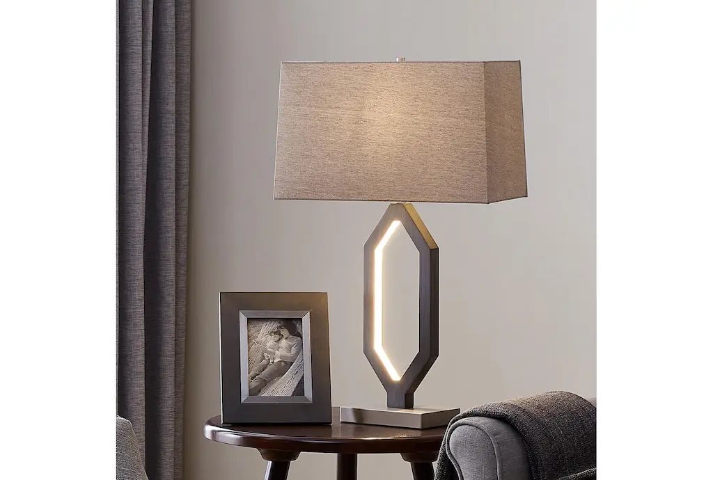 Brighten up your space with the 31 Inch Charcoal Grey Metal Table Lamp. This lamp features a rectangle shape and a pedestal base, making it a stylish addition to any room. The built-in LED night light adds functionality and convenience.