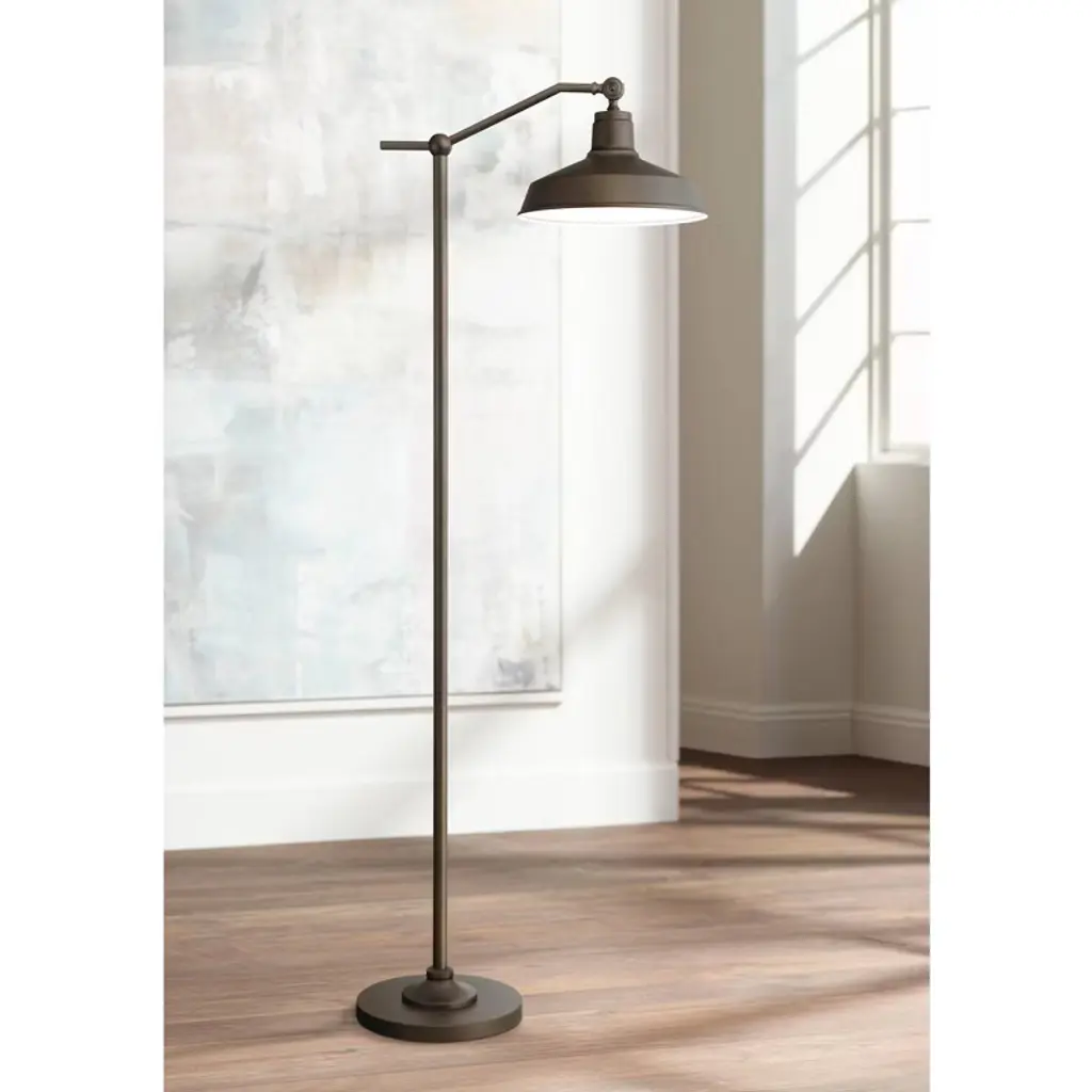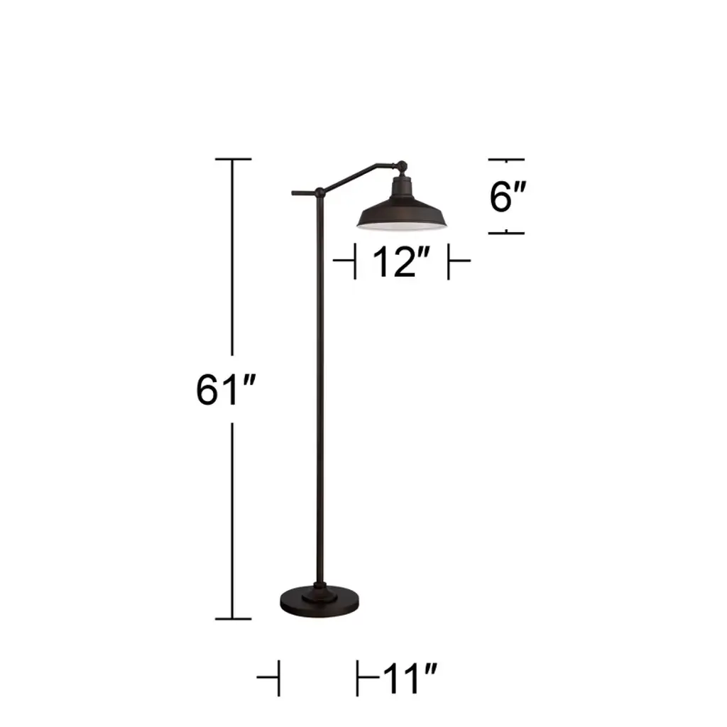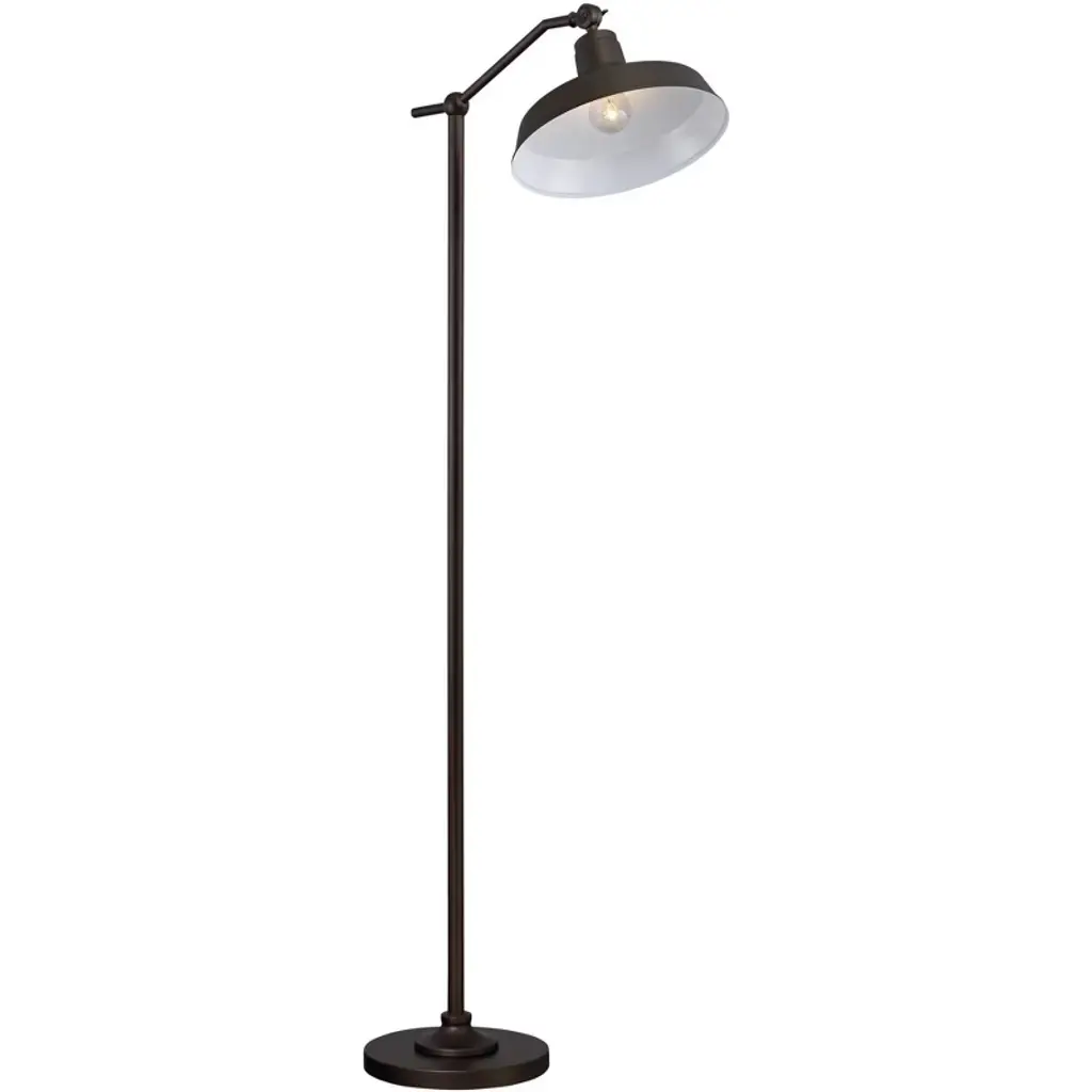 Add warmth to your decor with this downbridge metal floor lamp. From the 360 Lighting brand, the design is an ideal look for a farmhouse-style room or rustic decor. The base, pole, arm, and dome shade are all in a rich satin bronze finish. The dome shade is adjustable and has a white finish interior that helps reflect the light throw. The lamp comes with an in-line on-off foot switch that offers you easy lighting control.