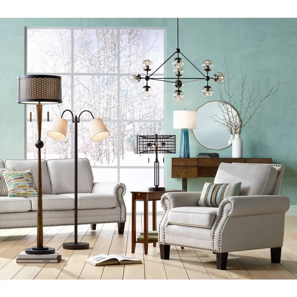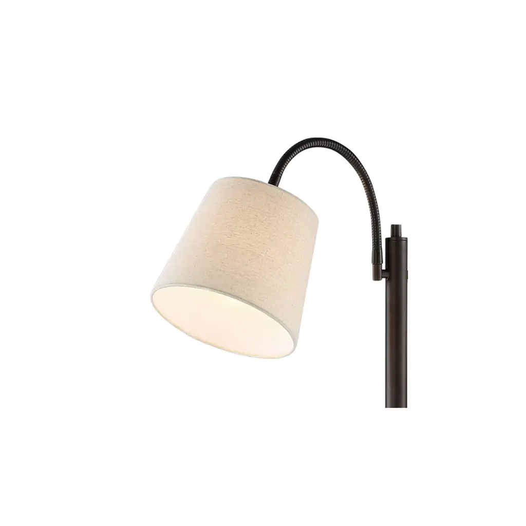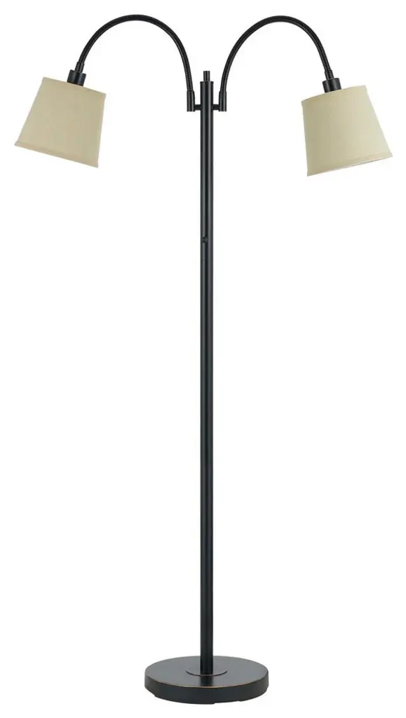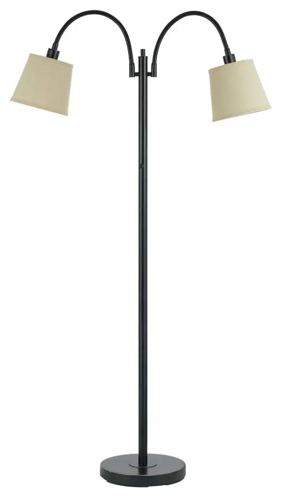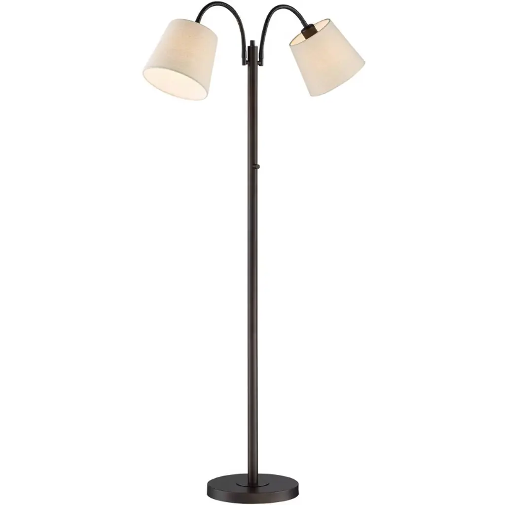 Stylish and versatile, this adjustable floor lamp by 360 Lighting allows you to focus light on reading or other tasks. Finished in bronze and paired with tapered cotton blend drum shades that complement the dark frame. A 4-position switch on the column allows you to use right, left or both lights at the same time.