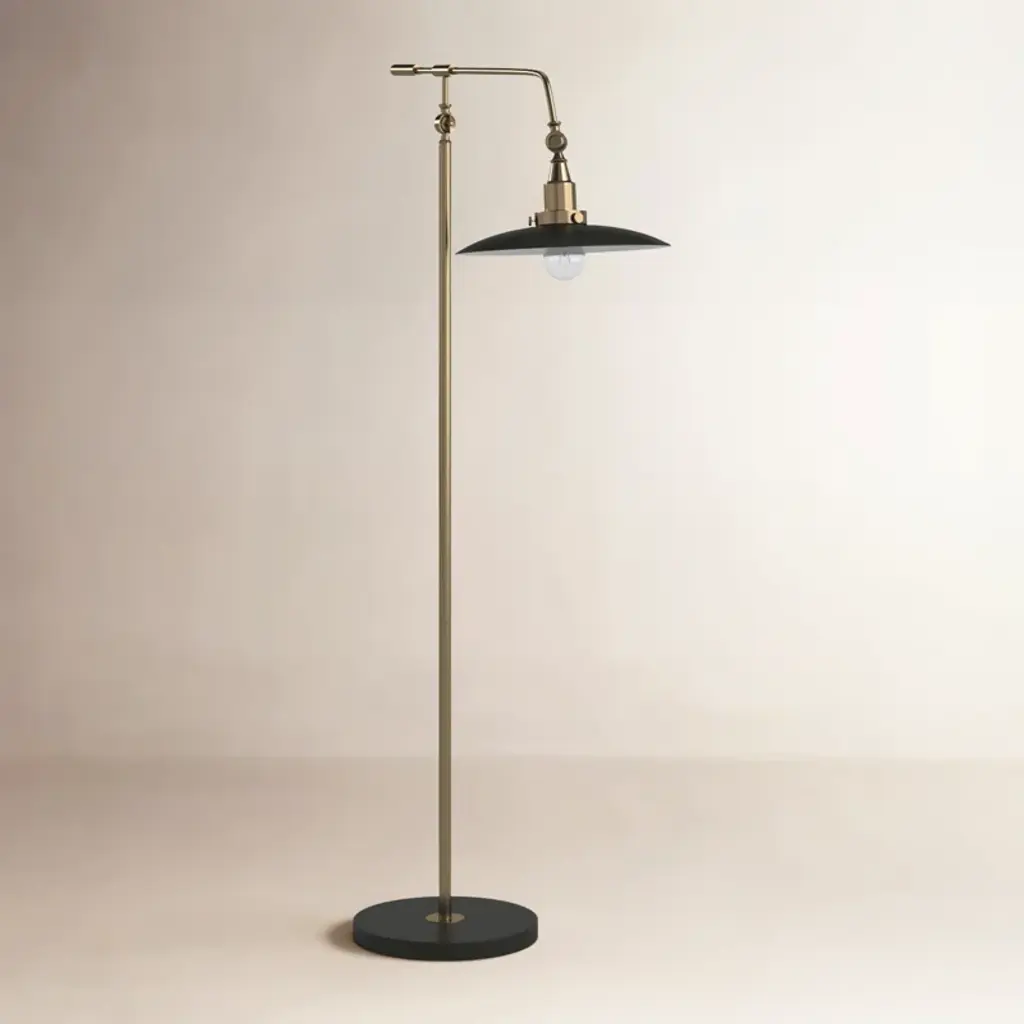 The fluid lines and essential design marking this floor lamp, enhanced by an antiqued finish, lend the piece the signature flair of industrial designs. A dainty arch raised on top of the tiered, circular base appears surmounted by a streamlined stem that extends up to the socket, where the E27 bulb (not included) is fitted, its light flow radiating unobstructed in the desired direction thanks to the adjusted joint.