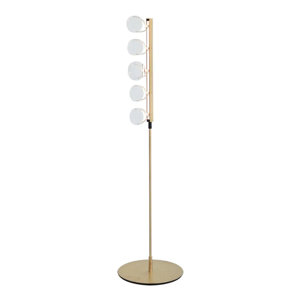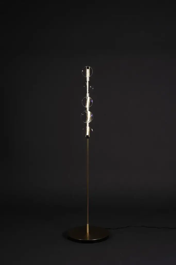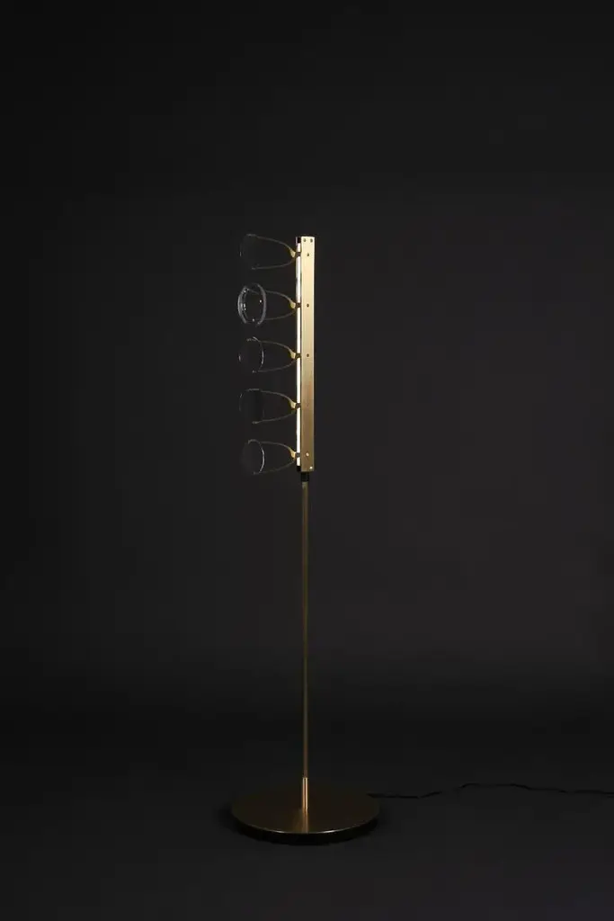 5-lens floor lamp by object density handmade dimensions: ø28 x 108 cm material: brass (messing), optical lenses, dimmable 12v led through a close inquiry into an optician’s process and production, object density have realised the opportunity to redefine an element of waste. The lens luminaire seeks to reinstate the value of imperfect optical lenses, by highlighting their inherent beauty and unique distortive qualities. De admirant, historically known as de bruine heer, formerly served as the philips design head-office, and is one of eindhoven’s most iconic buildings. Now standing at the foot of the building is an optician & coffee cafe. Drawing upon the city’s history of lighting innovation, new objectivity architecture, and the re-contextualisation of a waste stream, the lens luminaire is the tangible convergence of inspiration. As a physical expression of eindhoven’s city culture - past and present, we reflect upon how this interplay may shape its future. Object density is an eindhoven-based design studio established by nicola charlesworth and kim stanek. Originally from australia, the duo moved from sydney to eindhoven in 2019 to immerse themselves in dutch design culture while founding their studio. Object density creates artistic objects of use, drawing upon research and cultural narrative to communicate values of sustainability and community. Often integrating waste or discarded materials, they seek to reinstate value through the conscious process and material decontextualisation. Through examination of object typologies, materials and processes of the past and future, object density believes that a designed object can be ‘dense’. Dense with the tacit knowledge of those who contributed throughout the design process. up to 250v (europe/uk standard).