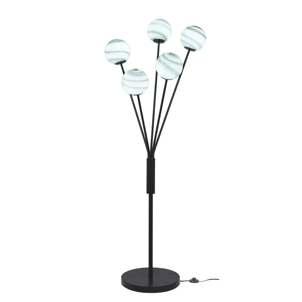 Brighten up your space with this 5-Light Metal LED Floor Lamp. Featuring five glass ball shades adorned with a charming tonal design, this lamp brings a playful mix of shape, color, and texture to your home. Whether placed in your living room, home office, or bedroom, this floor lamp is sure to impress. Use it as a standout accent piece or pair it with others to create a cohesive and inviting ambiance. LED bulb included for your convenience.FeaturesGeneral InformationDimensions:Floor LampRequirementsElevate your space with Lamps Per Sé, your trusted source for exquisite lamps and accent furniture. Based in Troutman, NC, we offer a curated selection of high-quality, budget-friendly, and on-trend collections that cater to your unique style and needs. Our commitment to customer satisfaction means personalized assistance to discover products that truly resonate with you. At Lamps Per Sé, we take pride in delivering top-tier service and a stunning array of lamps and accent pieces, ensuring your home reflects your personality, whether you're embracing coastal serenity or mountain tranquility. Discover your perfect decor today!