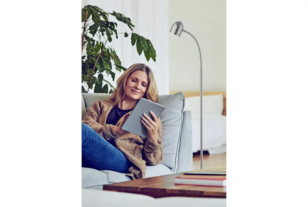 Enhance your home or office with the 51 Inch Tall Brushed Nickel Metal LED Task Floor Lamp. This modern lamp features a sleek brushed nickel finish that complements any decor. Perfect for a kids' room, living room, or office, it provides ample light with its efficient LED technology.