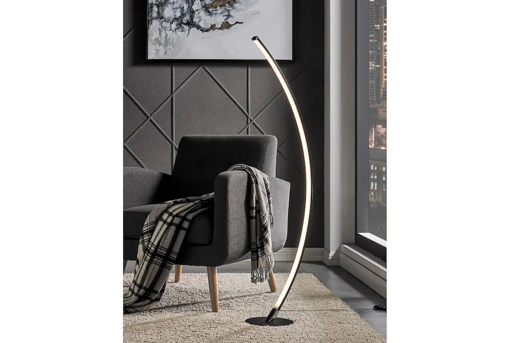 Enhance your living space with the 52 Inch Black Metal Low Arc Floor Lamp with Dimmable LED. This modern floor lamp features a sleek black metal design that seamlessly fits into any bedroom or living room. The arched shape and dimmable LED lights provide both functionality and style, making it perfect for small spaces.