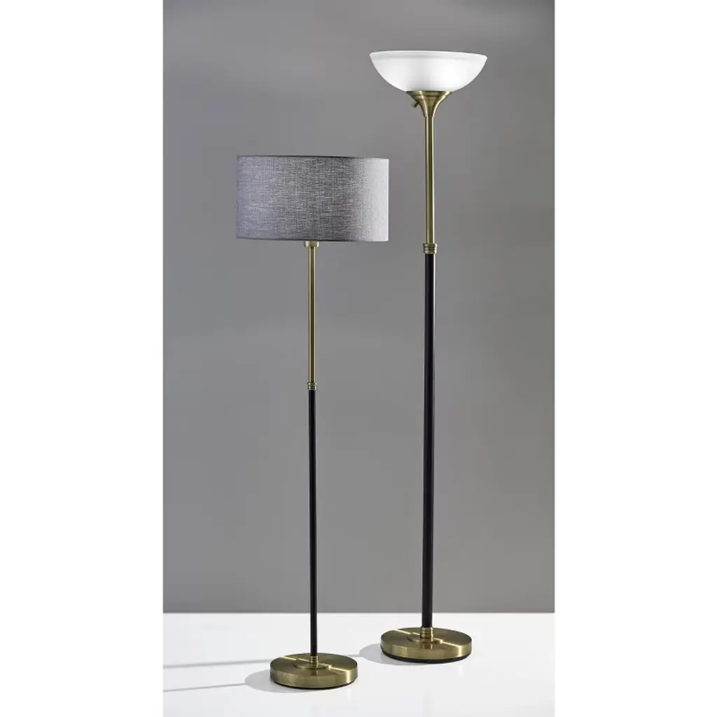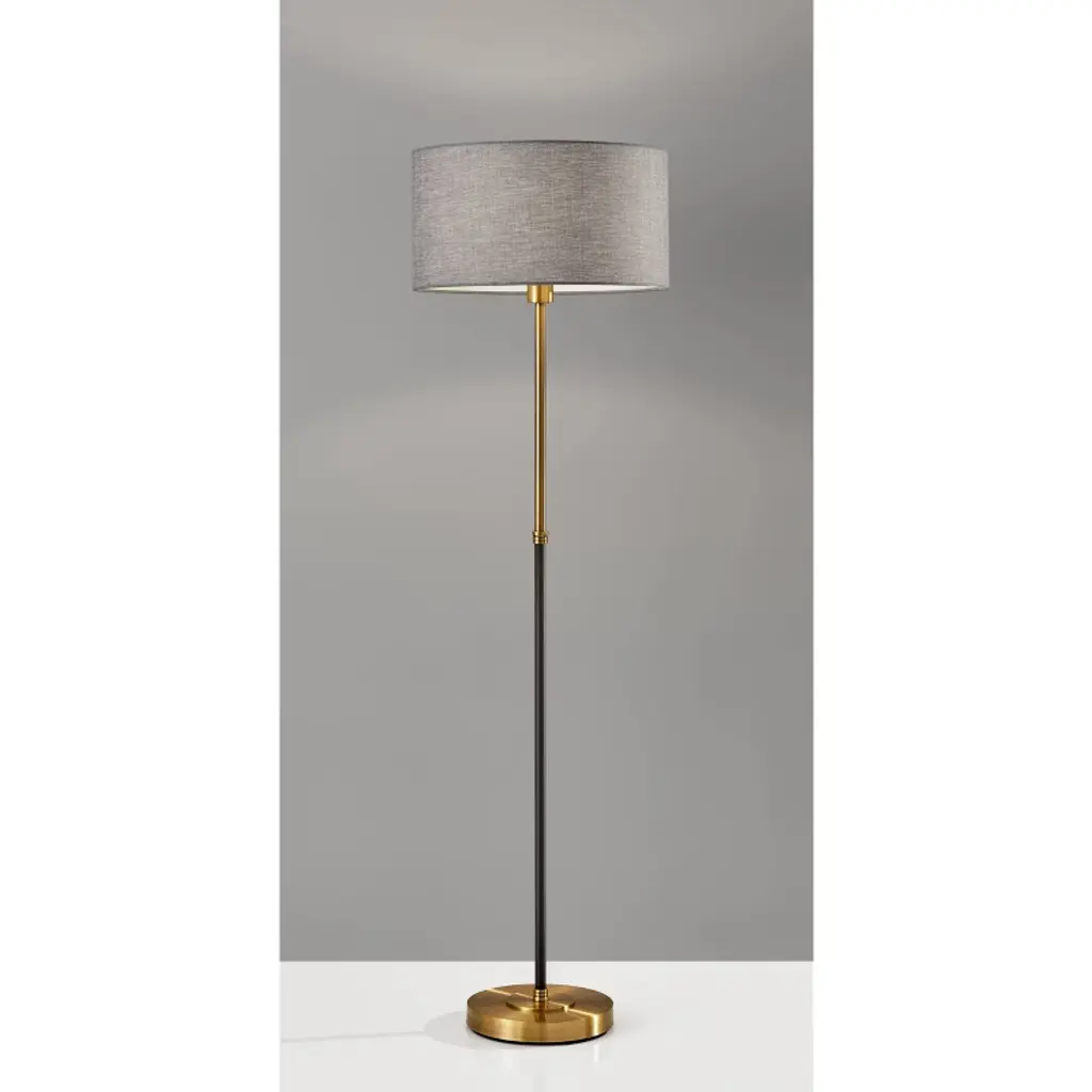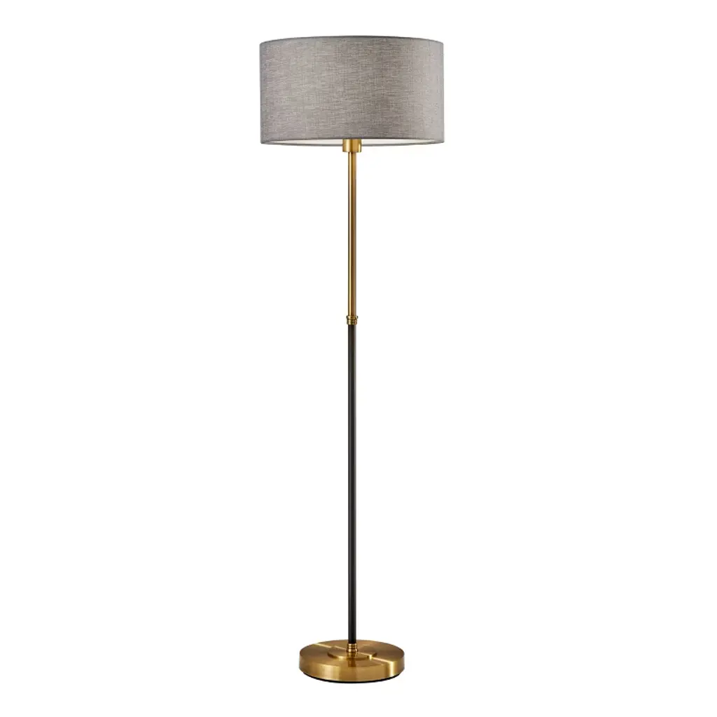 59" 3-way Bergen Floor Lamp Black - Adesso: Mid-century, Antique Brass Mix, Gray Shade