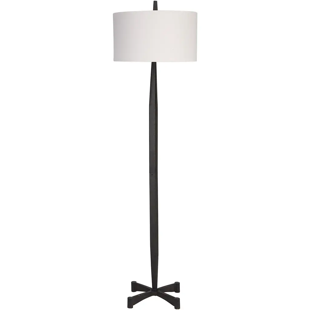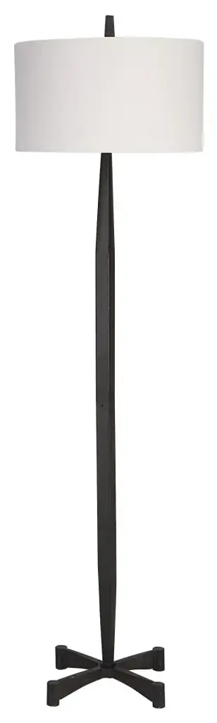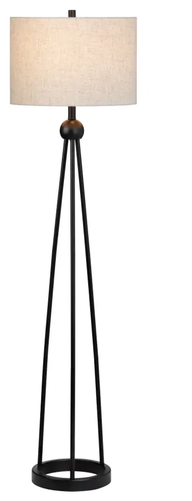 59.5" Bronze Metal Floor Lamp With Beige Linen Drum Shade