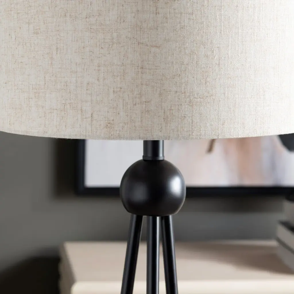 This Bronze Metal Floor Lamp brings a warm, contemporary touch to any space with its sleek design and rich bronze finish. The lamp features a stable tripod base with three slender legs, offering both style and durability. Topped with a beige linen drum shade, it casts a soft, ambient light perfect for creating a cozy atmosphere. With a convenient Type A rotary switch, it supports a 150W bulb. Measuring 16.5" width, 16.5" length, and 61" height, this lamp is ideal for living rooms, bedrooms, or office spaces seeking an elegant upgrade