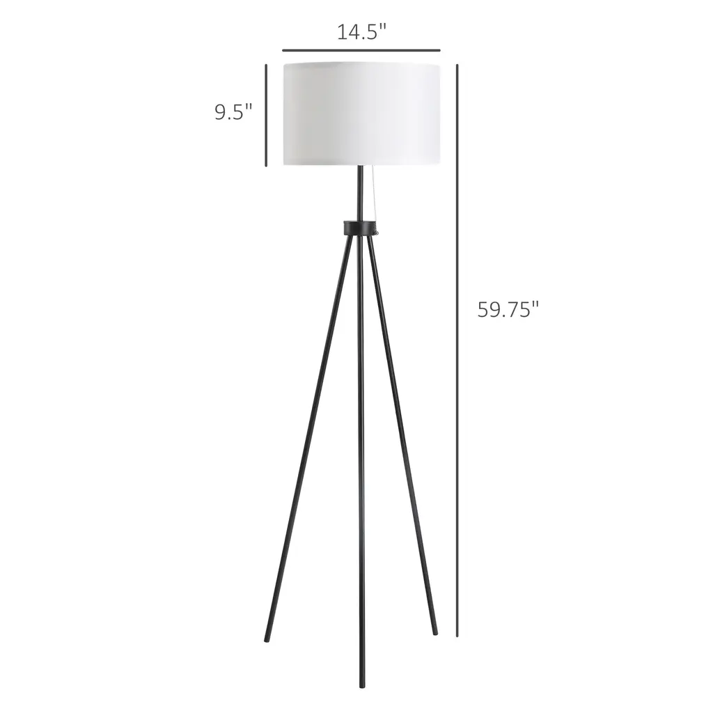 A floor lamp is the perfect blend of style and function, offering versatile lighting solutions for any room in your home. Whether you're looking to add ambient lighting to your living room, reading light beside your favorite chair, or an accent piece for your bedroom, a floor lamp provides both practical illumination and a touch of elegance.Dimension: Overall Dimension: Φ14.5" x 59.75" H. Lampshade Dimension: Φ14.5" x 9.5" H. Input Voltage: 120V/60Hz.Eye-Catching Style: Tripod design floor lamp with the classic color matching is elegant and eye-catching. Ideal for homes, offices, bars, clubs, restaurants, and cafes.User-Friendly: Power cable length 118" expands well the scope of use for this standing lamp. With the pull switch, you can turn on/off the lights conveniently.High-Quality Material: Steel frame with triangle floor lamp design provides a stable and quality structure.Universal Lamp Holder: The lamp stand has a conventional E26 socket pin. You can use a 40W bulb. Note: Bulb is not included.