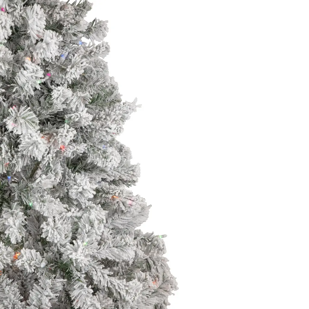6.5' Flocked Madison Pine Artificial Christmas Tree, Multi Lights - 6.5 Foot - Green - 6 Foot