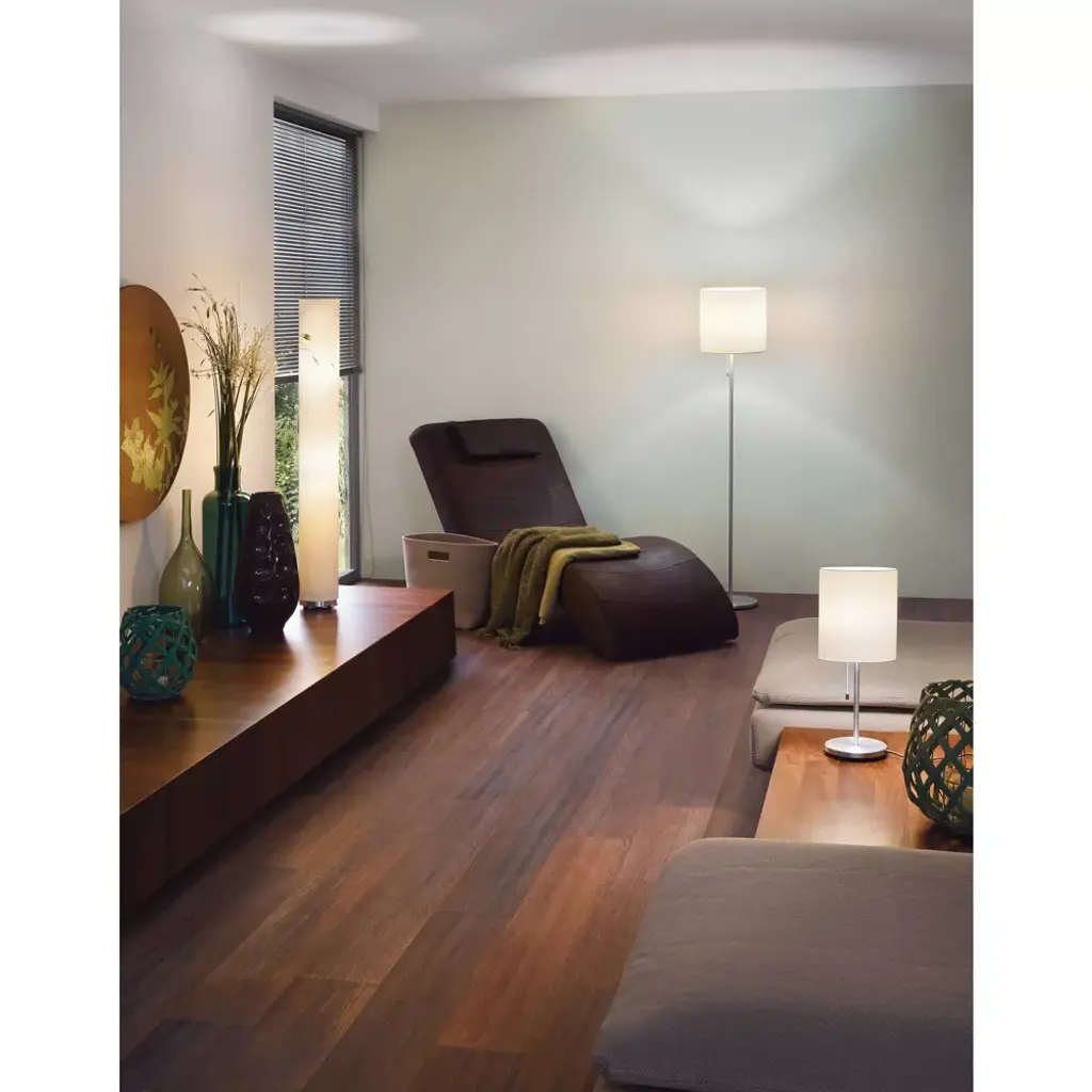 The Eglo Sendo Floor Lamp brings a modern yet contemporary presence to your table tops with its shiny aluminum finished base and stylish cream drum fabric shade. Sleek and stylish, the Sendo collection is a truly modern aesthetic evocative of the paper lamps of Japanese décor. These easily adaptable fixtures are sure to find a place in any home. This piece exemplifies superior product design and great styling. It will pair well with traditional styling. Regardless if you put it in the bedroom or family room, this floor lamp stands out. Suitable for residential use in a dry location.