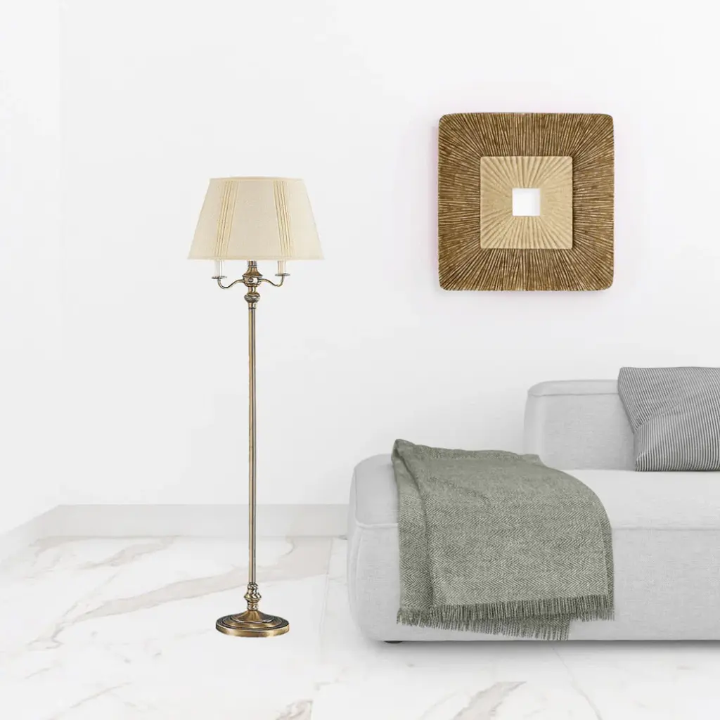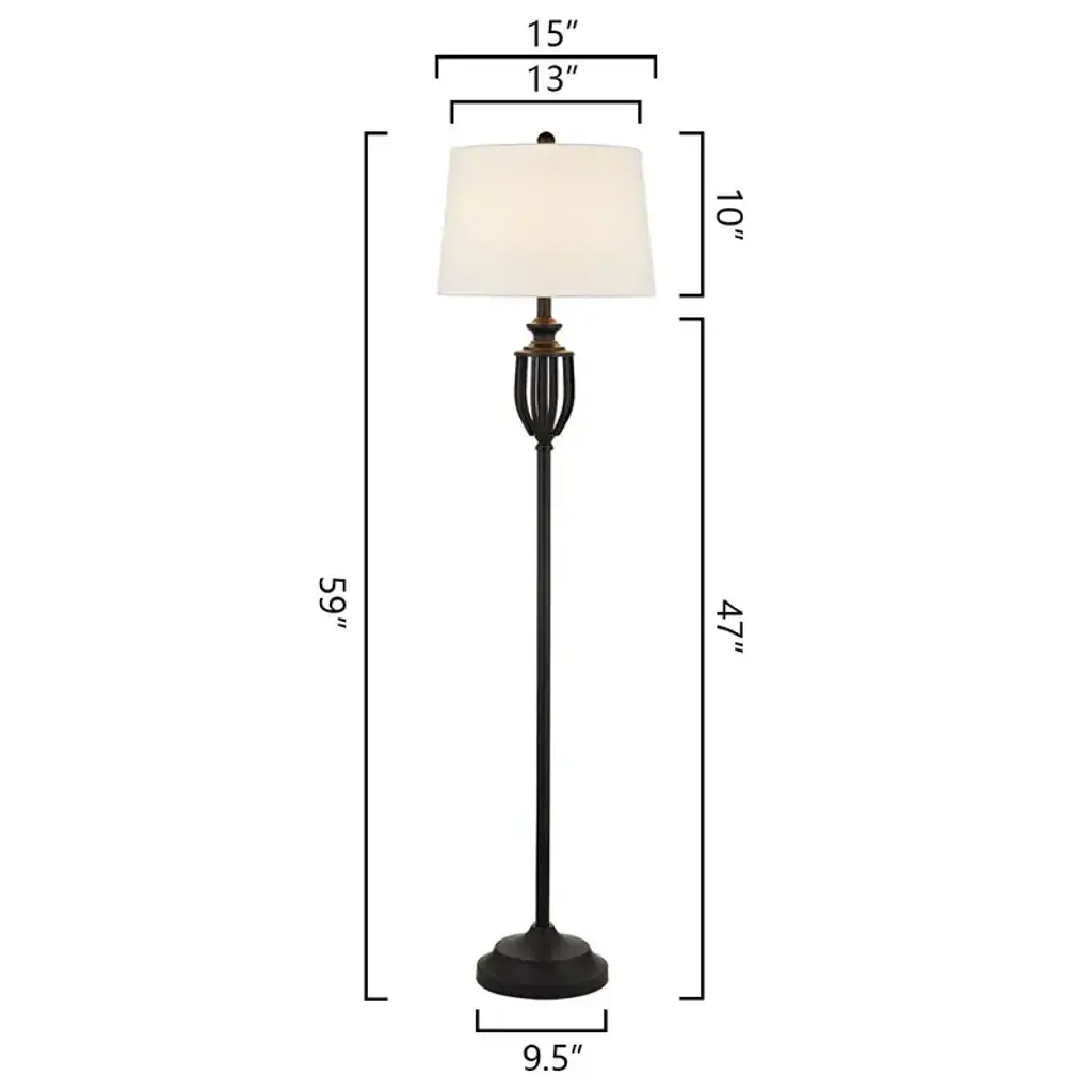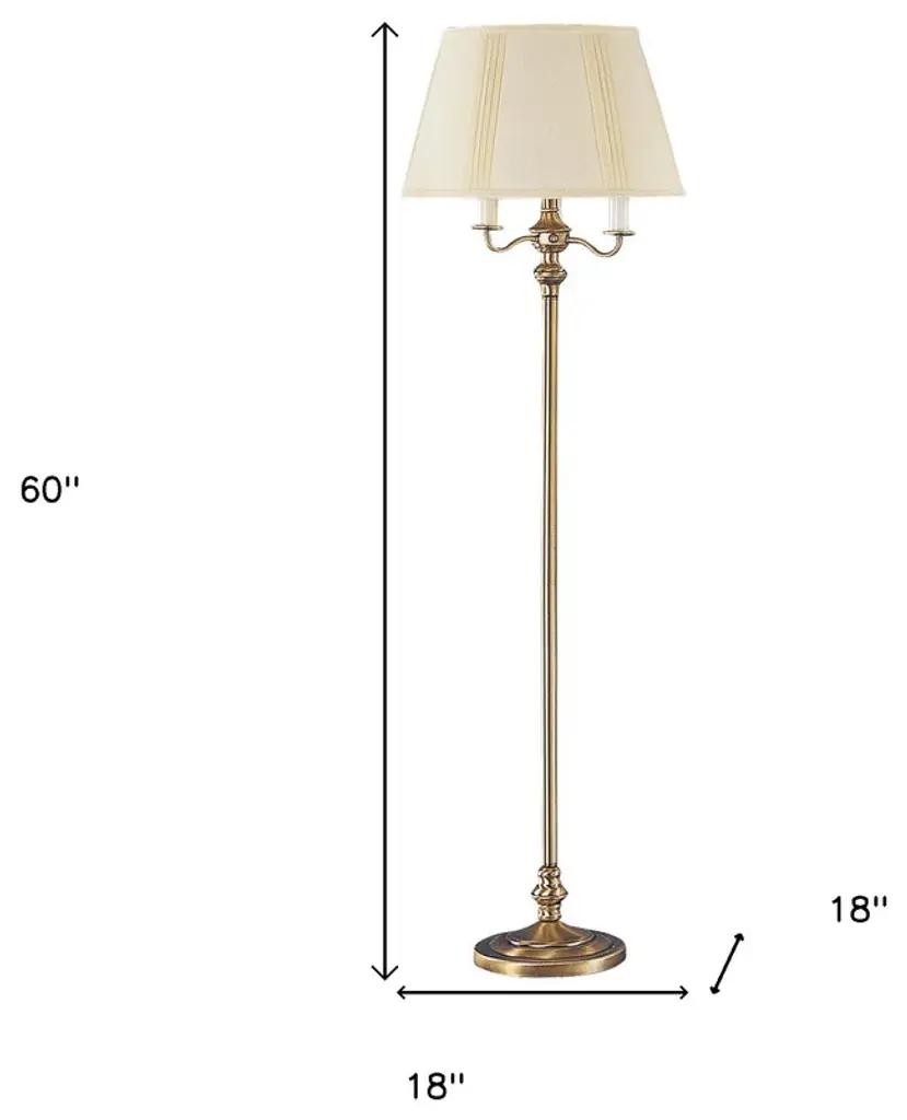 This 60" bronze four light traditional shaped floor lamp with beige square shade is a great way to add some brightness to any corner of your home. The base of this lamp is made of metal finished in a bronze tone. The bronze base coloring infuses a warm and rich tone to your space. This good looking lamp includes a fabric square shaped shade. Classically styled, this traditional lamp features a straight pole that extends upwards from a single base. Use this lamp anywhere and elevate the look of the whole space. Bring some lite and good vibes into your space with this updated and stylishly designed lamp. 60" H x 18" W x 18" D