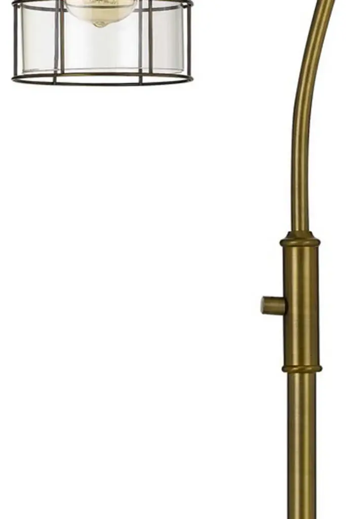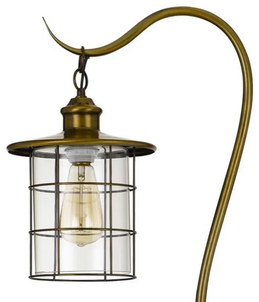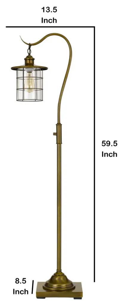 60 Inch Metal Downbridge Design Floor Lamp with Caged Shade, Antique BrassPlace this sturdily constructed metal floor lamp anywhere in the home to adorn its beauty and also make the best use of it. Replicating downbridge design, it has curved neck with cage design shade which compliments its construction. This piece comes with the Edison bulb of 60W which allows it to illuminate the entire surrounding and create the perfect atmosphere for a small house gathering.