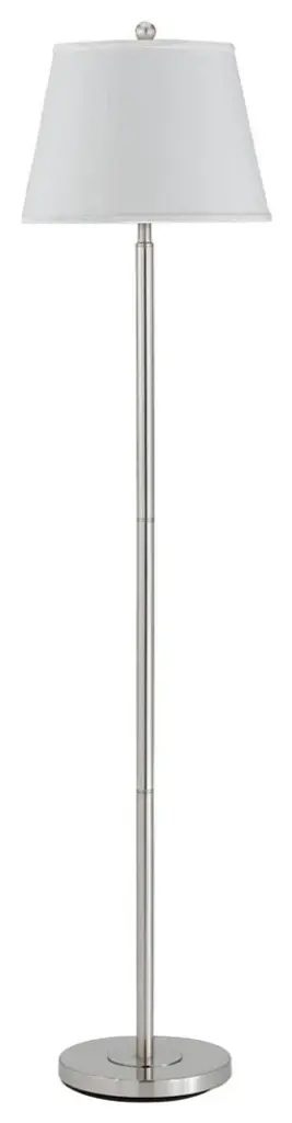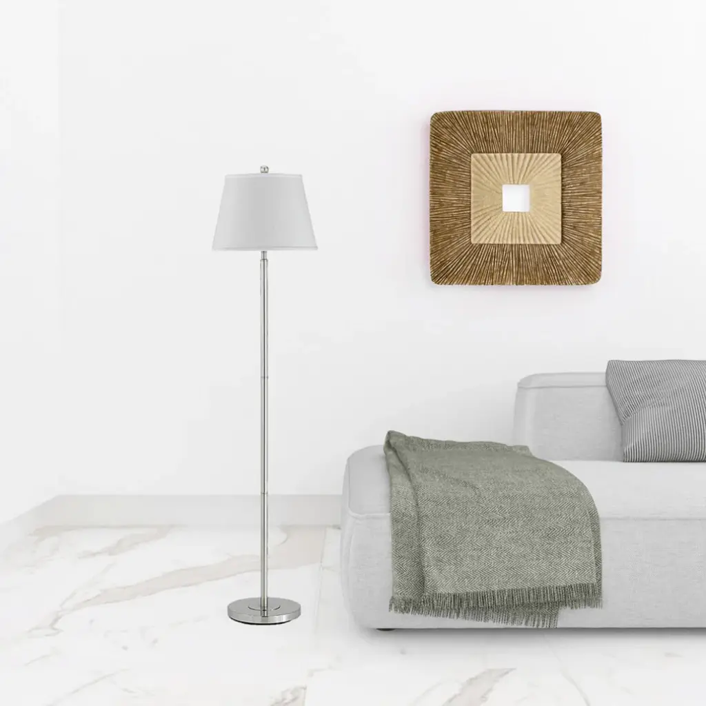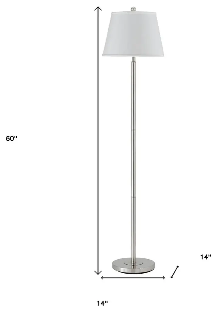 This 60" nickel traditional shaped floor lamp with white square shade is the perfect combination of design and function mixed with basic good looks. The lamp is made of sturdy metal and features a nickel color. The coloration of the nickel lamp base creates a fashionable marriage with the the white fabric square shaped shade. Classically styled, this traditional lamp features a straight pole that extends upwards from a single base. The light that this lamp throws is soft and warm to elevate the look of most any space in your home. Bring some lite and good vibes into your space with this updated and stylishly designed lamp. 60" H x 14" W x 14" D