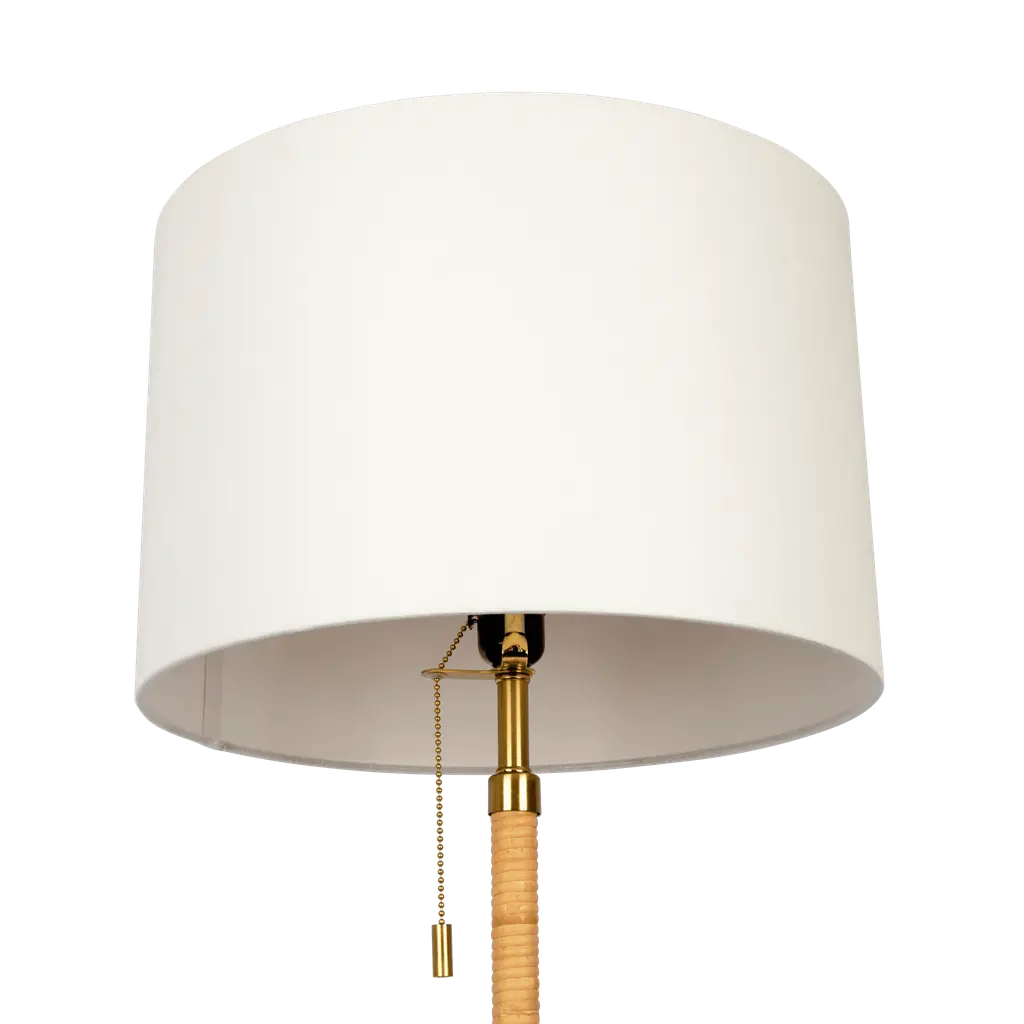Add warmth and natural beauty to your space with this stunning floor lamp, crafted from wood and rattan for a cozy, organic feel. The sleek brass base and soft linen shade blend seamlessly to provide both ambient and functional lighting. Designed with a single 100W bulb outlet, the on/off pull chain ensures easy operation. Perfect for enhancing any room, this lamp combines style and practicality effortlessly