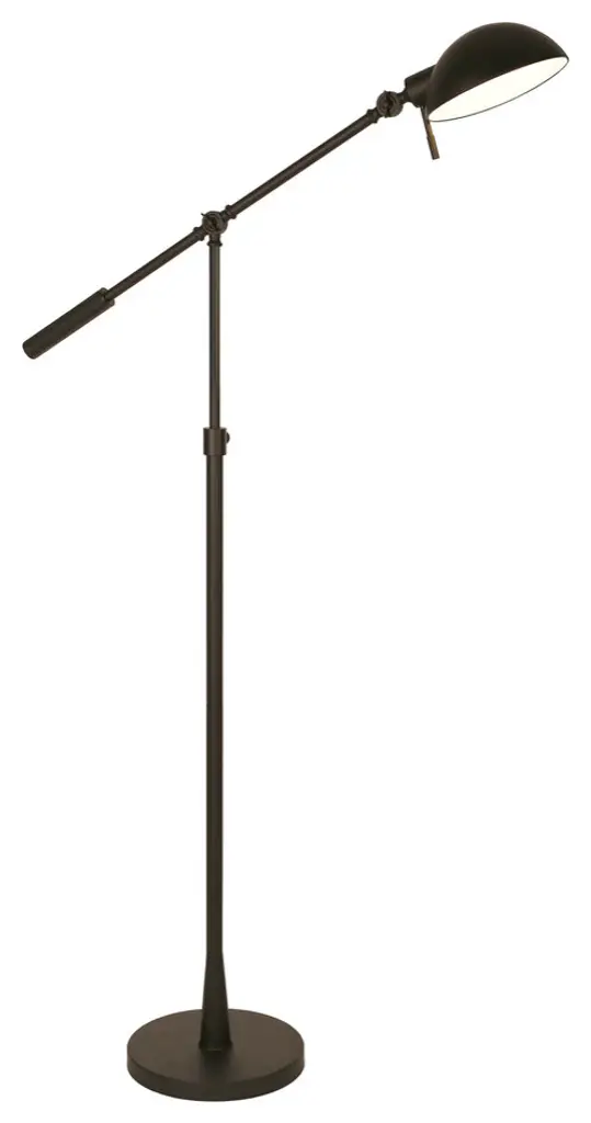 Embrace the good life with this hard working and stylish 61" black adjustable swing arm floor lamp with black cone shade. The lamp is made of sturdy metal and features a black color. The black of this lamp creates a nice contrast with the black metal cone shaped shade. A stationary base marries with a flexible swing arm that allows you to extend and move the light to where you need it. Use this lamp anywhere and elevate the look of the whole space. The perfect lamp to create just the right natural and soothing light in your space. 61" H x 35" W x 11" D
