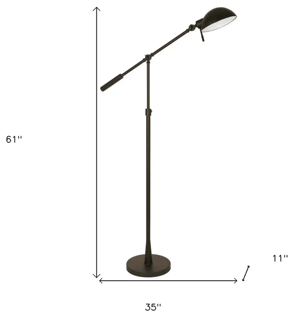 61" Black Adjustable Swing Arm Floor Lamp With Black Cone Shade