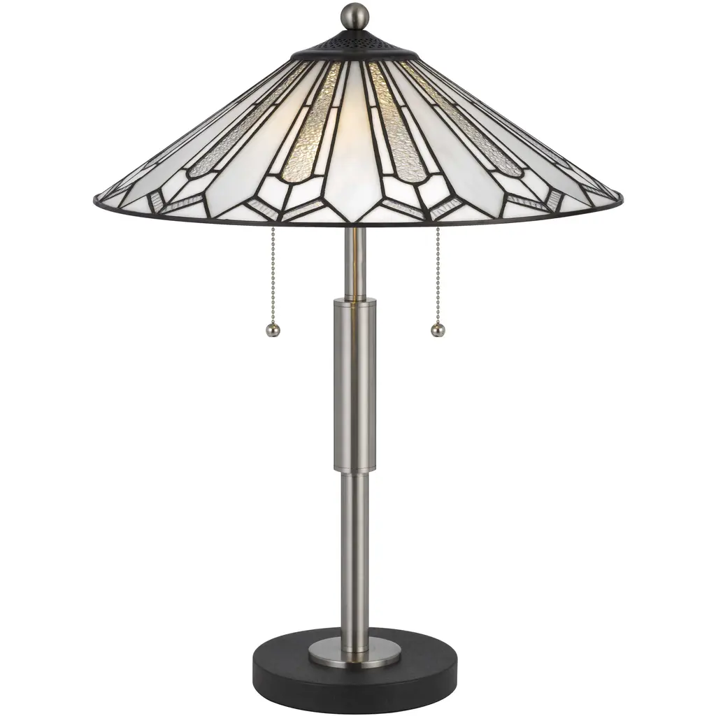 Add a touch of color to any room in your house with this hand-painted art glass floor lamp. It features an eye-catching white pattern with clear texturized glass accents This beautiful lamp comes complete with a rounded weighted base for added stability.
