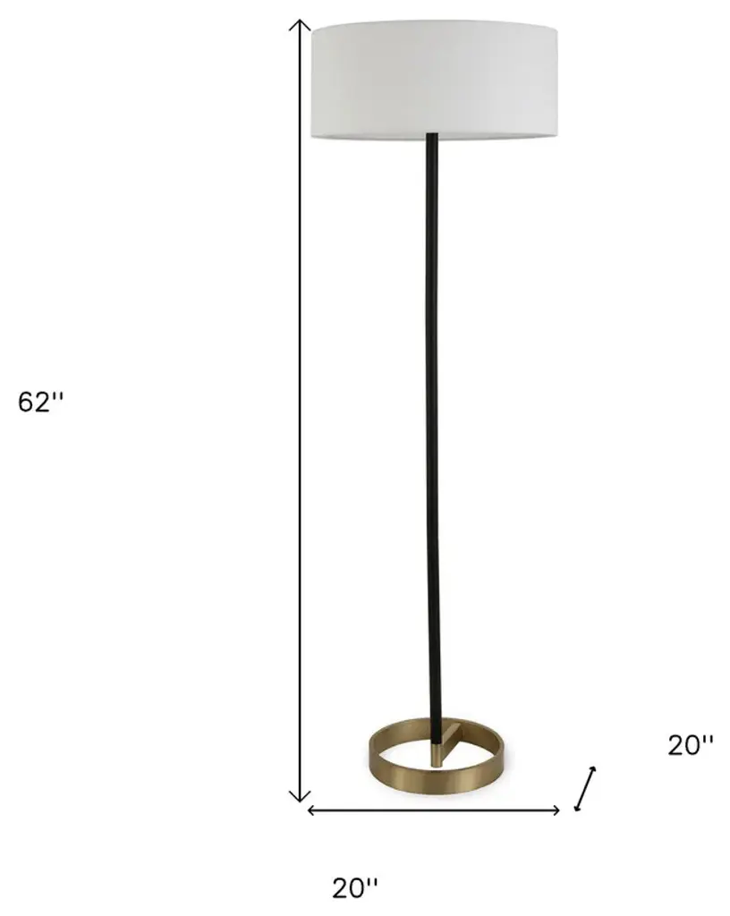 Truly a mix of design and functionality that doesn''t compromise on style, this 62" black traditional shaped floor lamp with white frosted glass drum shade will be a great addition to your space. The lamp is made of sturdy metal and features a black color. This good looking lamp includes a fabric drum shaped shade. Classically styled, this traditional lamp features a straight pole that extends upwards from a single base. The light that this lamp throws is soft and warm to elevate the look of most any space in your home. The perfect lamp to create just the right natural and soothing light in your space. 62" H x 20" W x 20" D