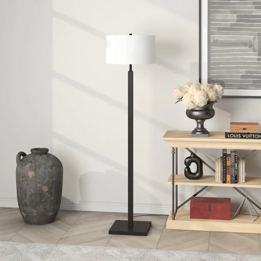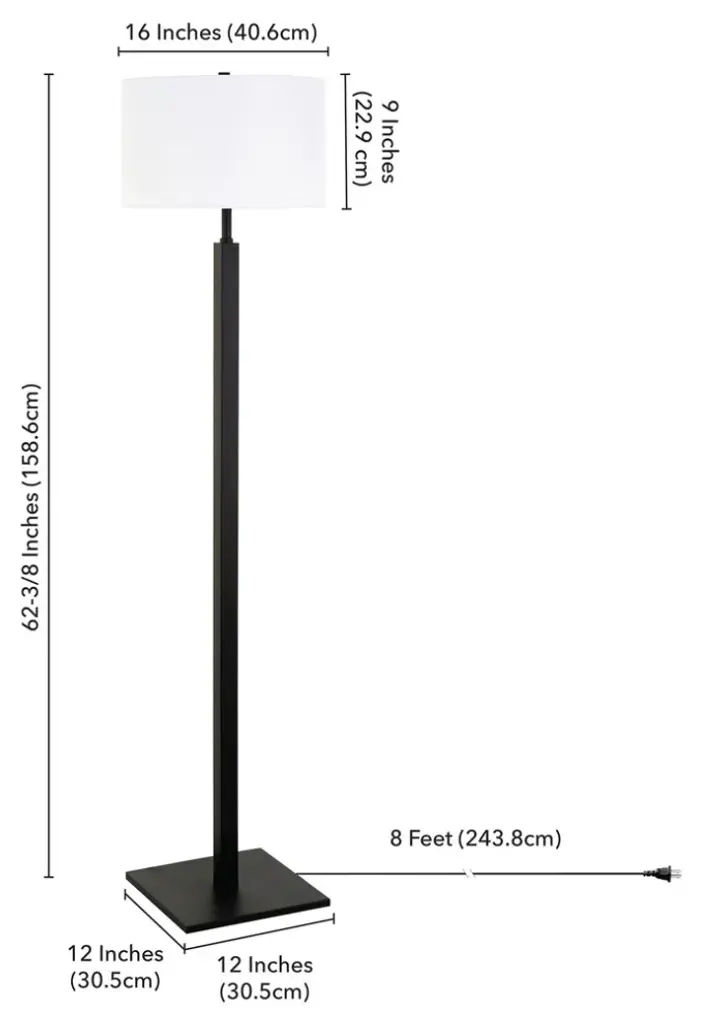 This 62" black traditional shaped floor lamp with white frosted glass drum shade is a great way to add some brightness to any corner of your home. The base of this lamp is made of metal finished in a black tone. The coloration of the black lamp base creates a fashionable marriage with the the white fabric drum shaped shade. Classically styled, this traditional lamp features a straight pole that extends upwards from a single base. High quality design makes this a great lamp for not only lighting, but accenting a room with style. It is perfect for virtually any decor. 62.32" H x 16" W x 16" D
