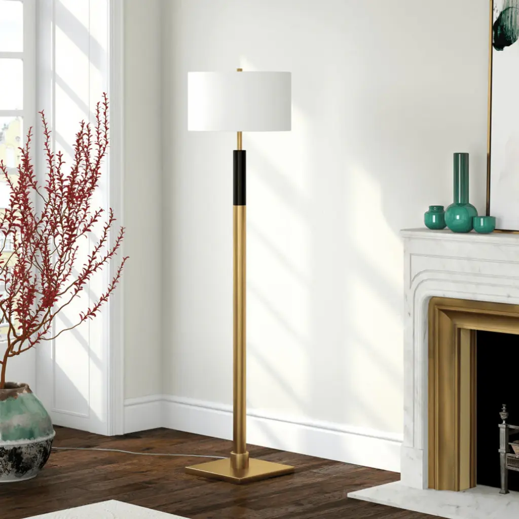 This 62" black traditional shaped floor lamp with white frosted glass drum shade is the perfect combination of design and function mixed with basic good looks. A gorgeous black metal base bring just the right amount of pizzazz to this fabulous lamp. The coloration of the black lamp base creates a fashionable marriage with the the white fabric drum shaped shade. Classically styled, this traditional lamp features a straight pole that extends upwards from a single base. Use this lamp anywhere and elevate the look of the whole space. It is perfect for virtually any decor. 62" H x 16" W x 16" D