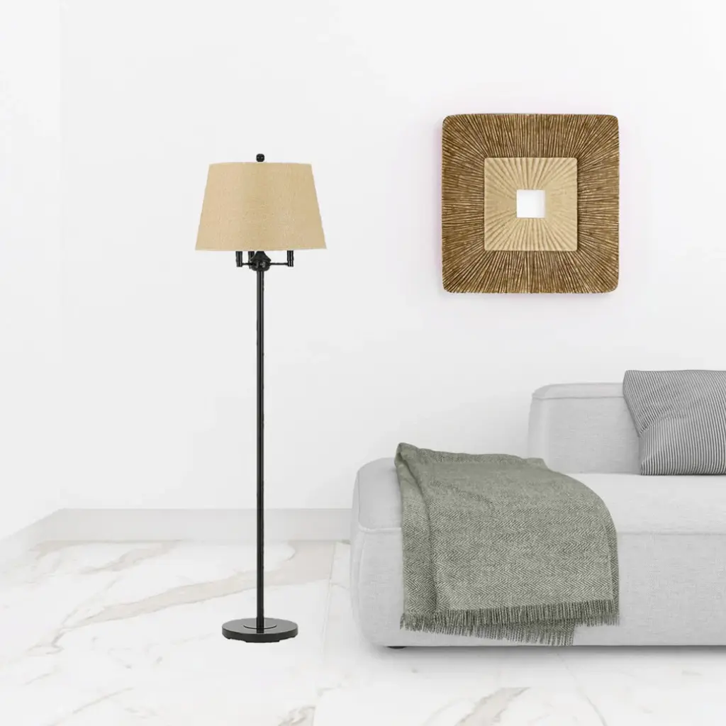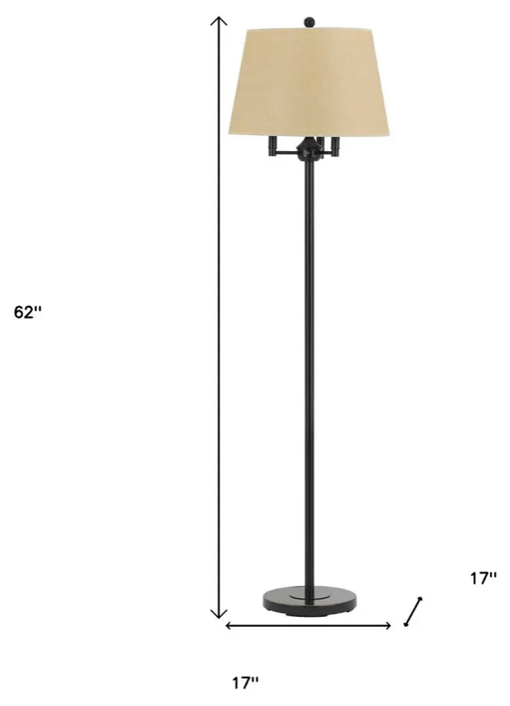 Embrace the good life with this hard working and stylish 62" bronze four light traditional shaped floor lamp with beige square shade. The lamp is made of sturdy metal and features a bronze color. The bronze base coloring infuses a warm and rich tone to your space. The coloration of the bronze lamp base creates a fashionable marriage with the the beige fabric square shaped shade. Classically styled, this traditional lamp features a straight pole that extends upwards from a single base. Use this lamp anywhere and elevate the look of the whole space. It is perfect for virtually any decor. 62" H x 17" W x 17" D