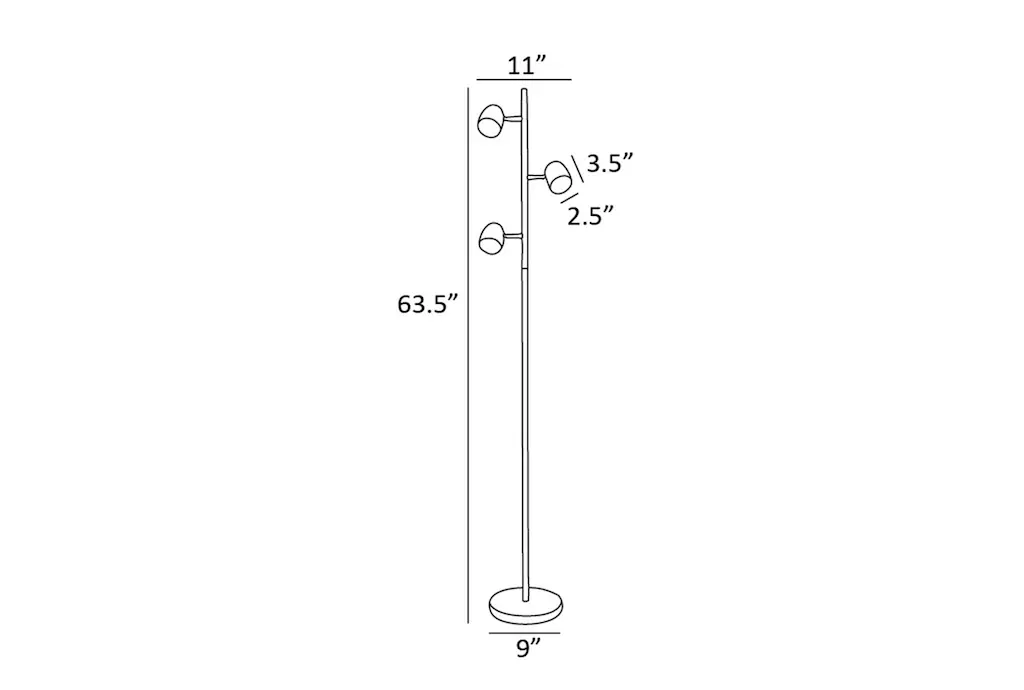 63 Inch Black/chrome Metal Led 3-Lite Task Floor Lamp