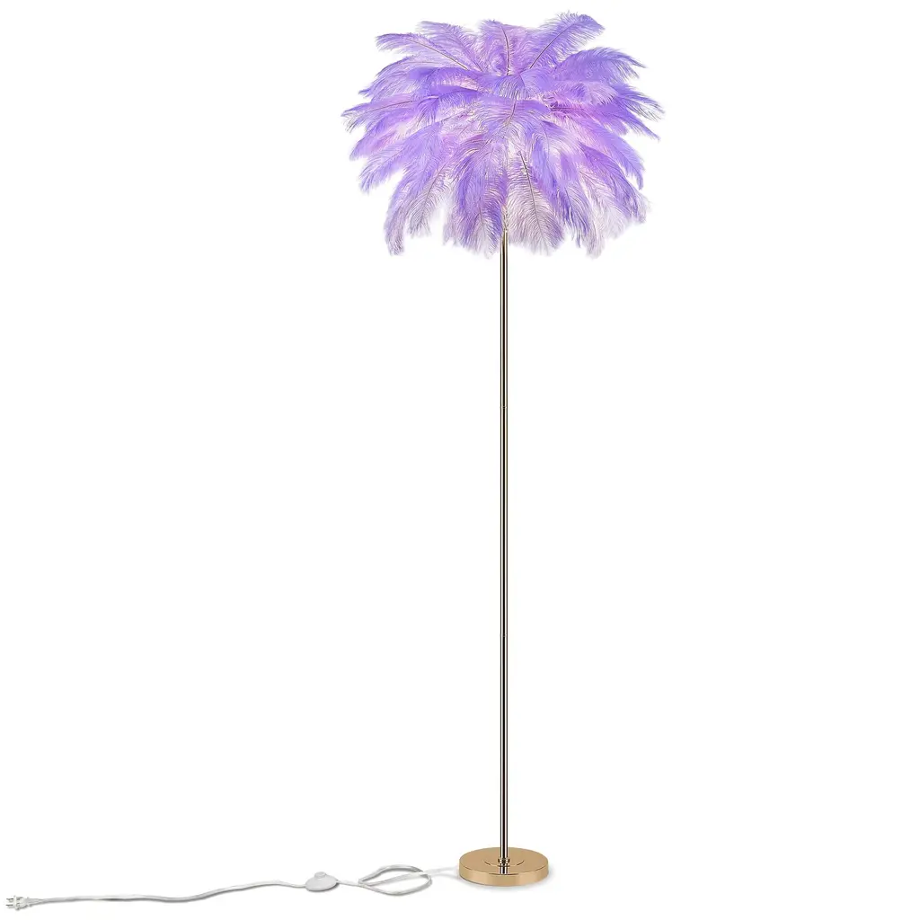 63 Inch Feather Tripod Floor Lamp With Bulbs - Purple